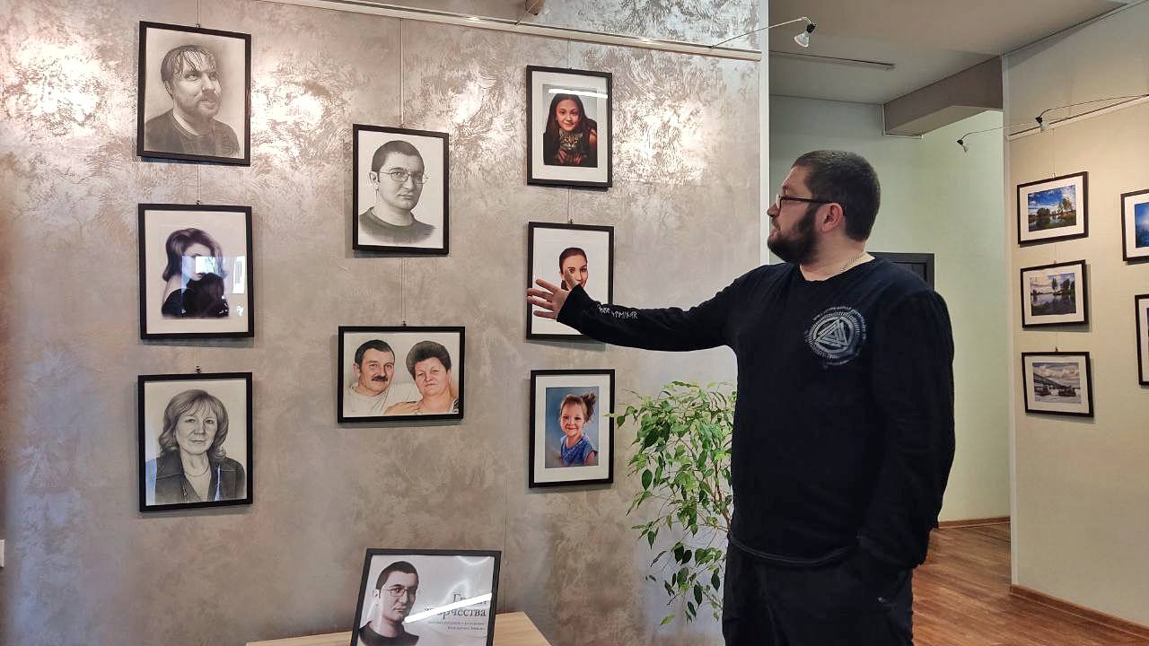 — Попросил на время только работы с изображениями родителей и у друга Максима Панкова забрал. А портрет моего школьного учителя еще не подарен своему герою. Рисовал его специально, чтобы сделать этому удивительному педагогу подарок на память.