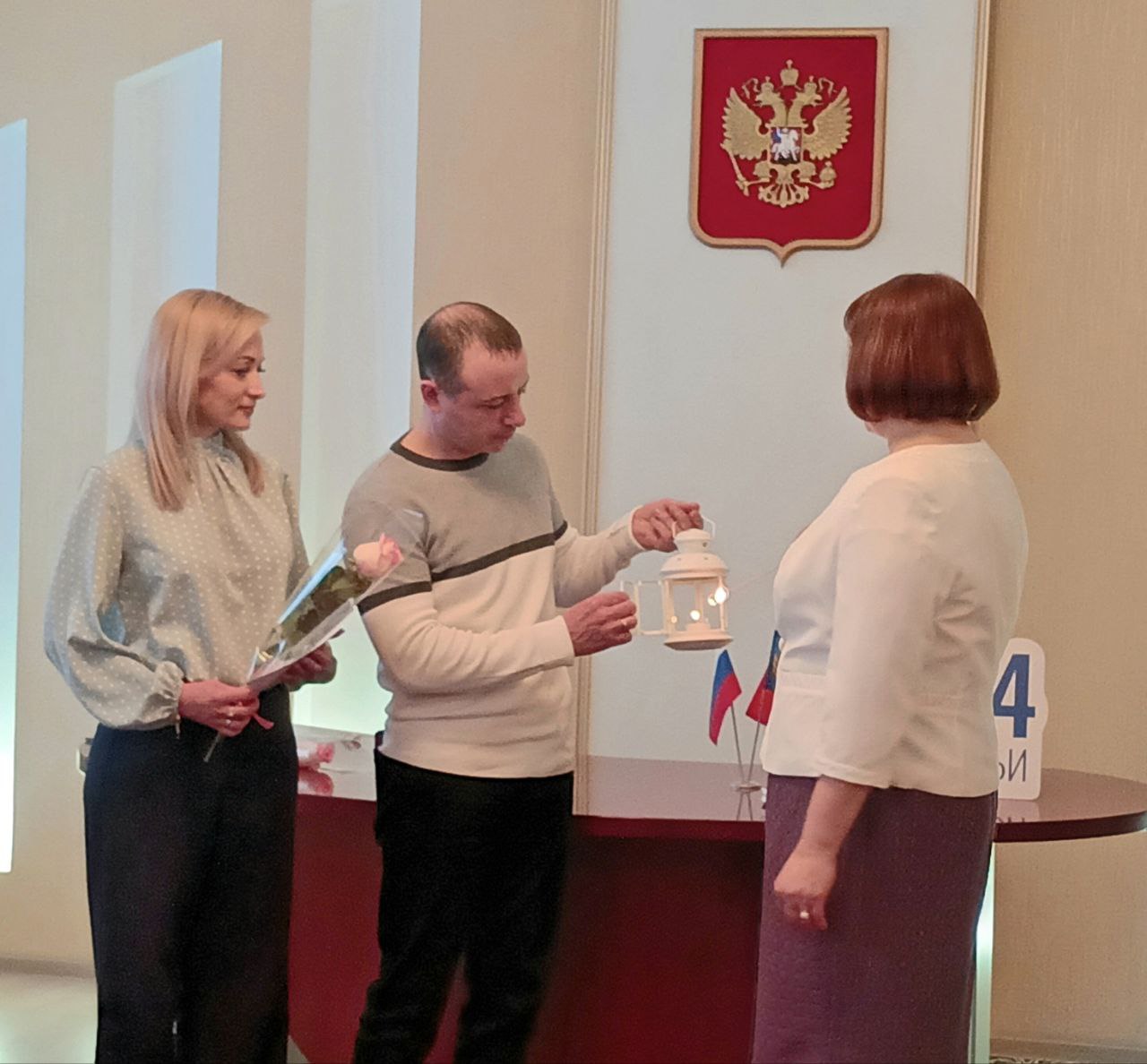 В Камень-на-Оби огонь доставили Татьяна и Александр Гусельниковы. Для многодетных семей, собравшихся в этот день в Каменском ЗАГСе, семейная пара записала трогательное видеообращение с теплыми словами.