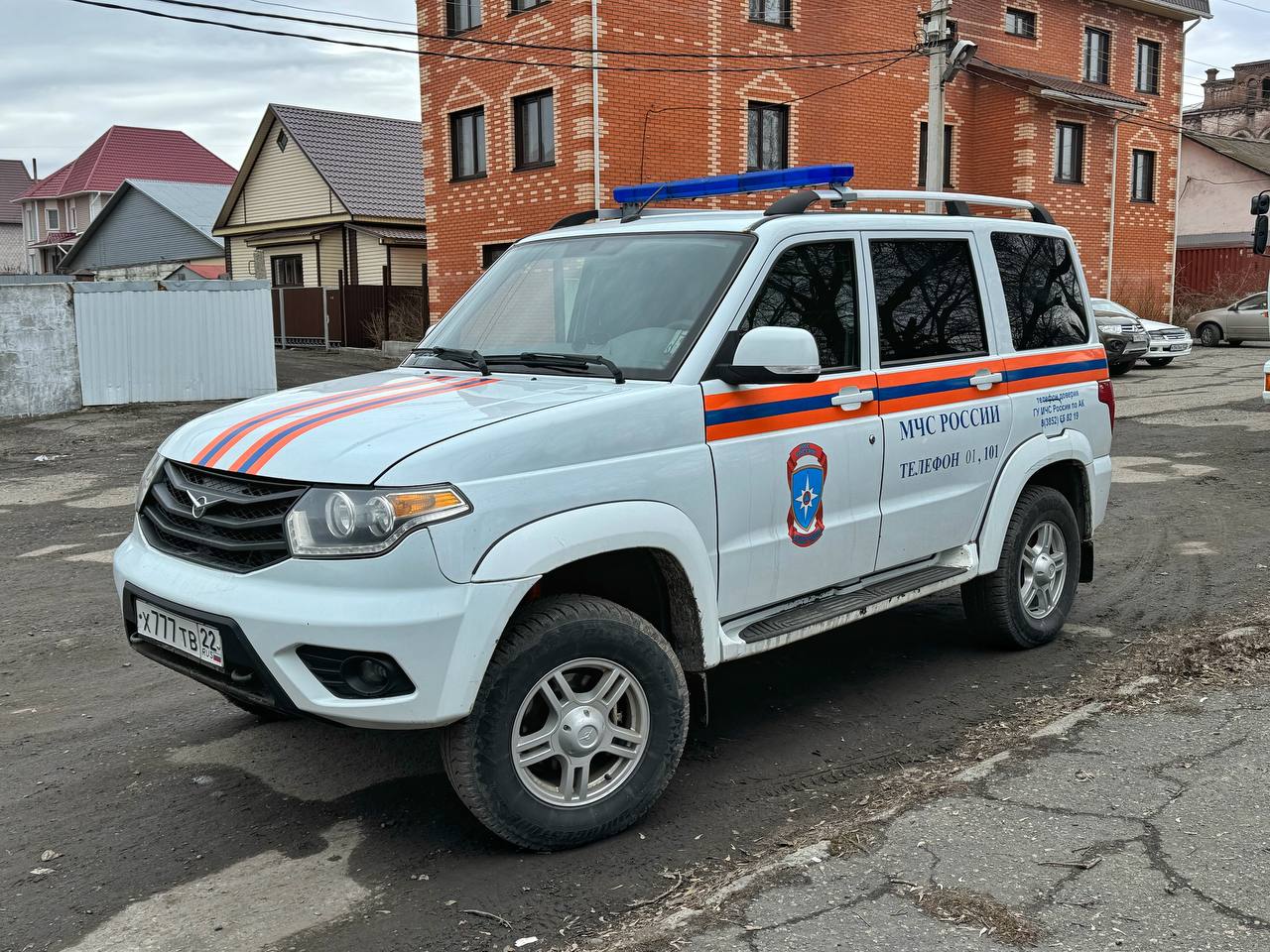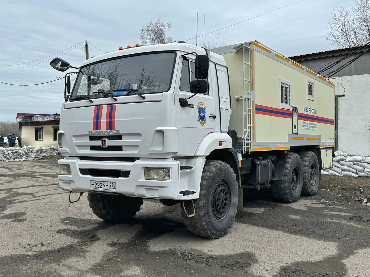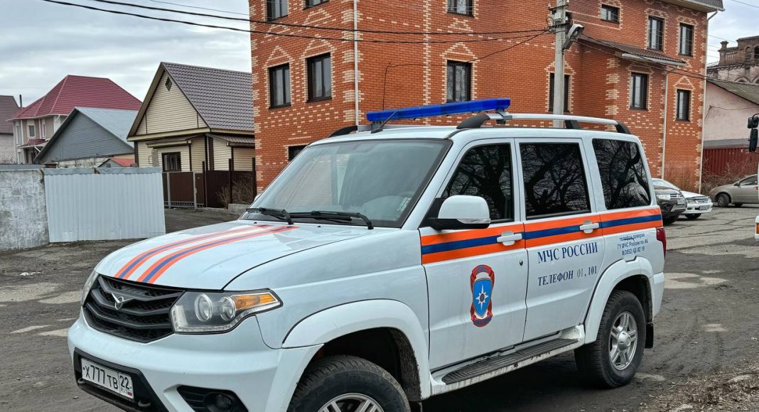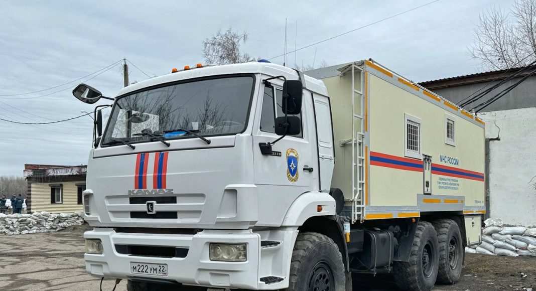 Возле кафе «Парус» развернут штаб МЧС, здесь же базируется техника спецчасти города Барнаула.