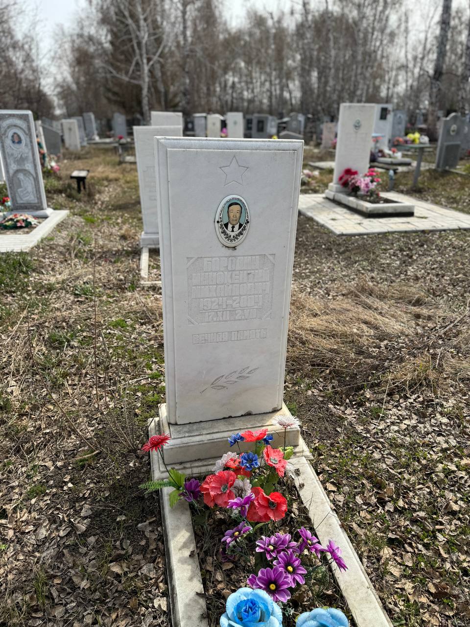 А все началось с одной могилки ветерана. Так получилось, что три года назад мимо места захоронения Александра Иконникова проходила Оксана Корнева, ныне депутат городского Совета. Она узнала дедушку, он приходился ей далеким родственником. А увидев, что могила находится в очень плачевном состоянии, решила для себя, что каждый год будет ухаживать за ней. Теперь она и историю его войны знает. Иконников Александр Степанович дошел до Берлина. Во время войны был четыре раза ранен — два осколочных и два пулевых. Пройдя страшную войну с нацистами, прожил долгую насыщенную жизнь под мирным небом. Ушел из жизни в 2007 году. А потом, вдруг, стал забыт. Никто не приходил к герою на могилу, вспомнить о нем, никто не наводил порядок на месте последнего пристанища. Так быть не должно!