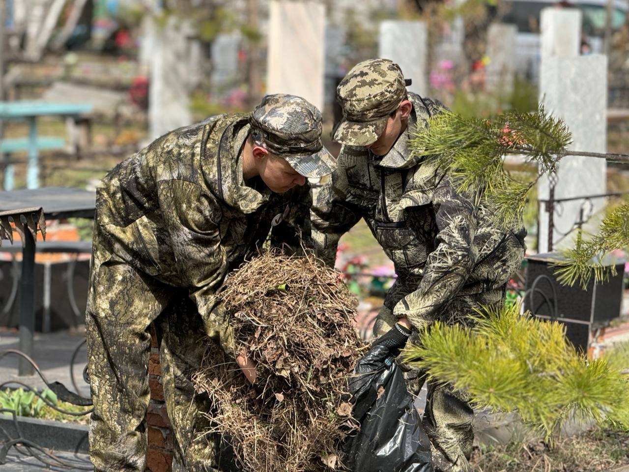 Каждый год откликаются на призыв и ребята из военно-патриотического объединения «Афганец» под руководством Сергея Брейфогеля. Ведь связь поколений и дань памяти предкам-героям Сергей Сигизмундович ставит во главу угла в воспитании поколений. Он уверен, что если бы каждый житель нашего города откликался на подобные акции, порядок был бы наведен не только на памятных местах, но и во всем городе.