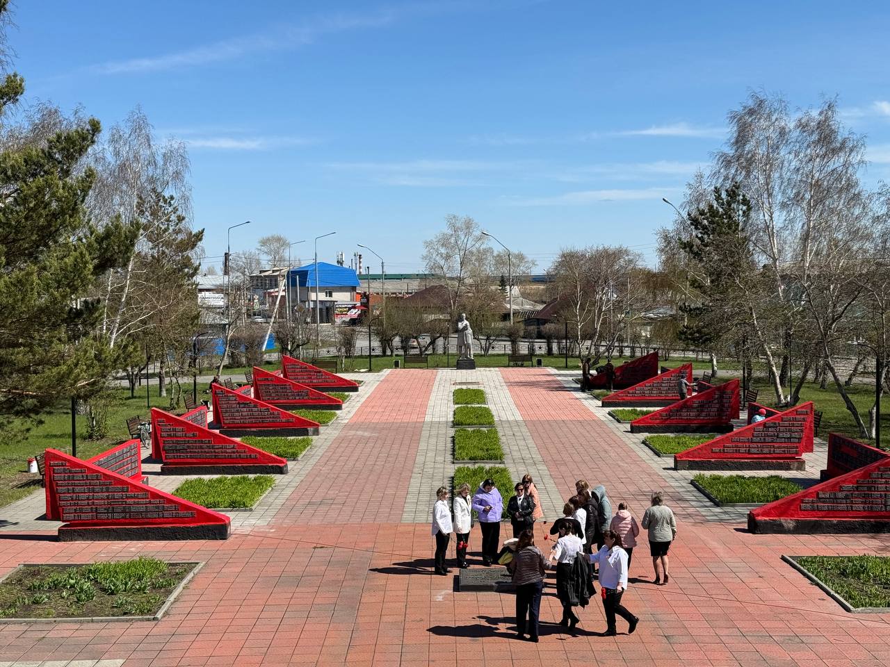 На мемориале установлены стелы, на которых высечены имена участников войны. Позже, насколько мы знаем из архивных источников, стелы достраивались, туда были внесены имена пропавших без вести. Также здесь установлены бюсты Героев участников ВОВ. И среди всех бюстов для нас особое значение имеет бюст Михаила Борисова, героя, поэта, имя которого носит центральная библиотека Камня-на-Оби.
