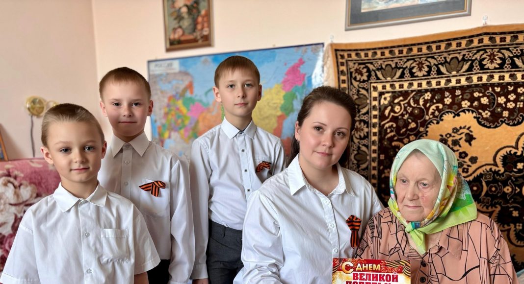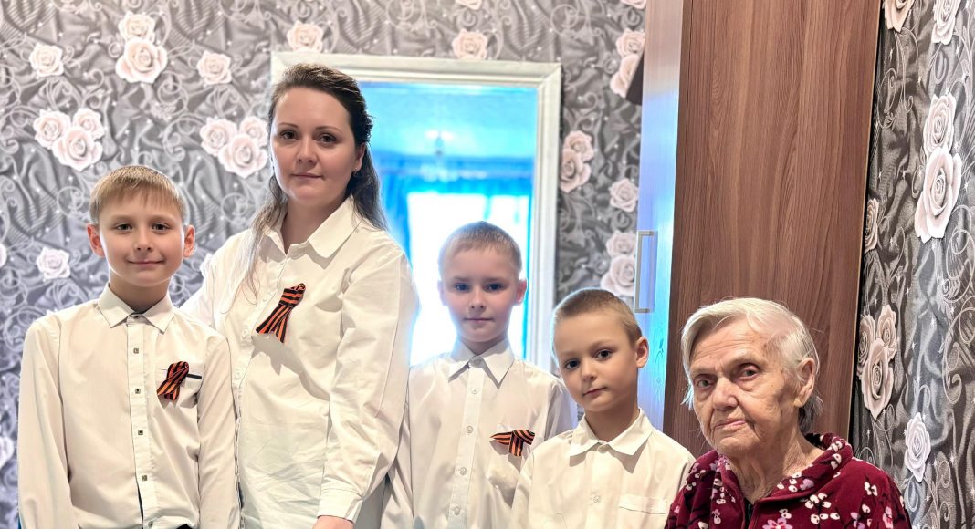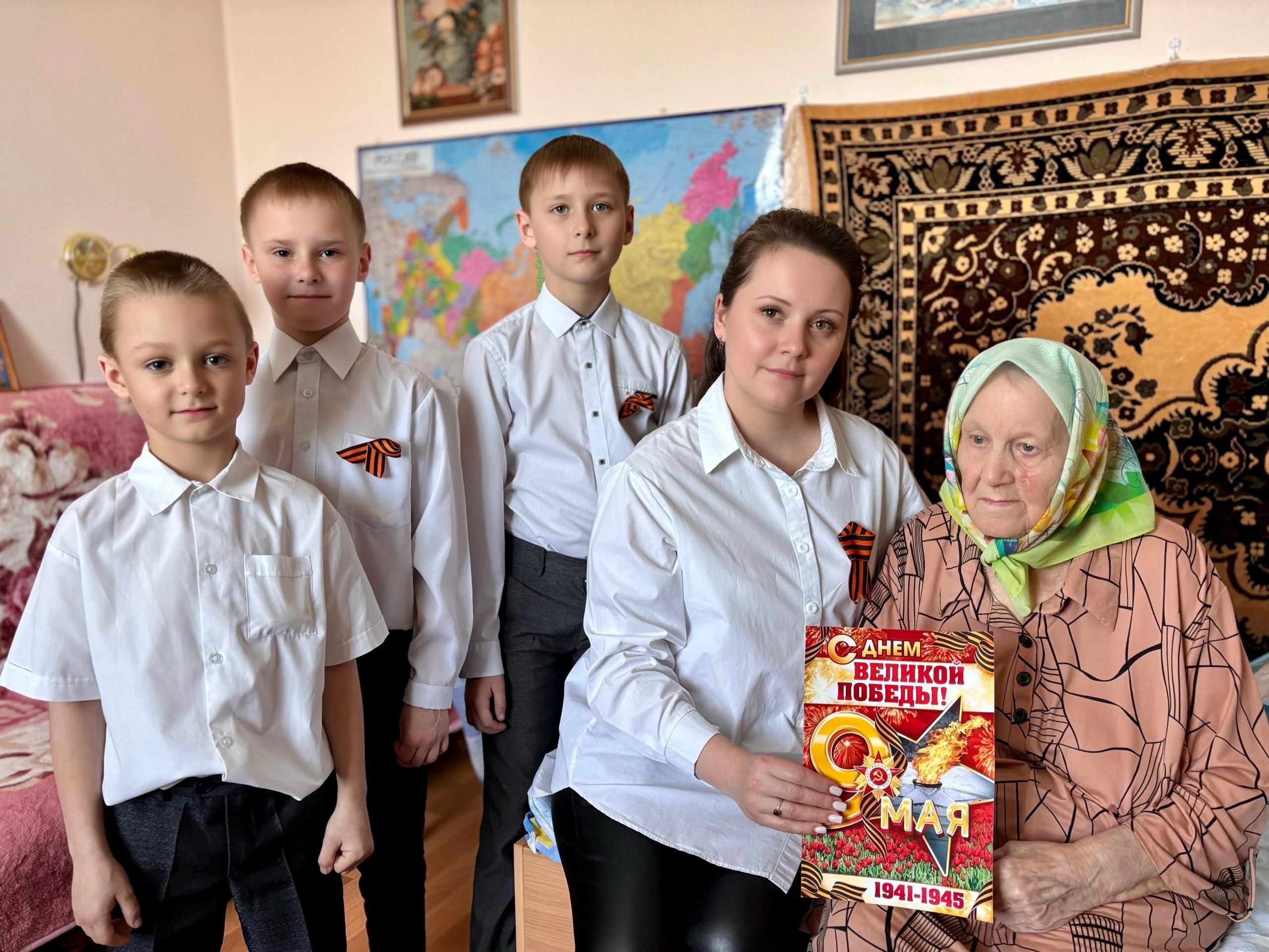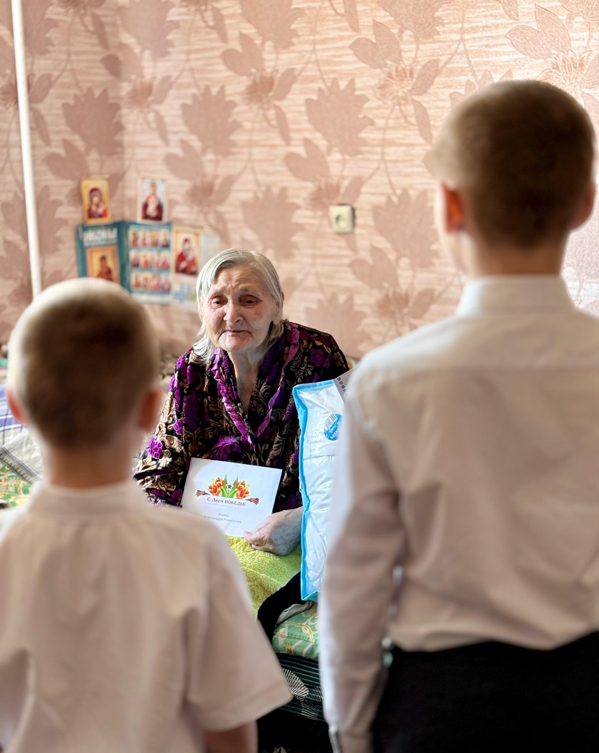 В преддверии 79-й годовщины Победы заведующая отделением социального обслуживания на дому Комплексного центра Марина Штанг с детьми отделения социальной реабилитации несовершеннолетних поздравили тружеников тыла и вдов Великой Отечественной войны, получающих социальные услуги на дому.