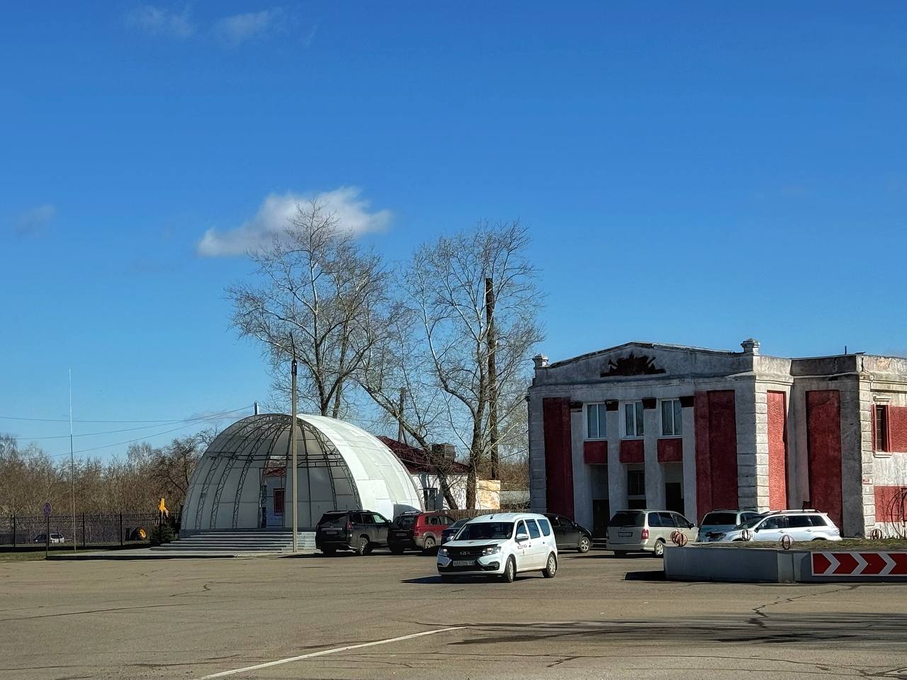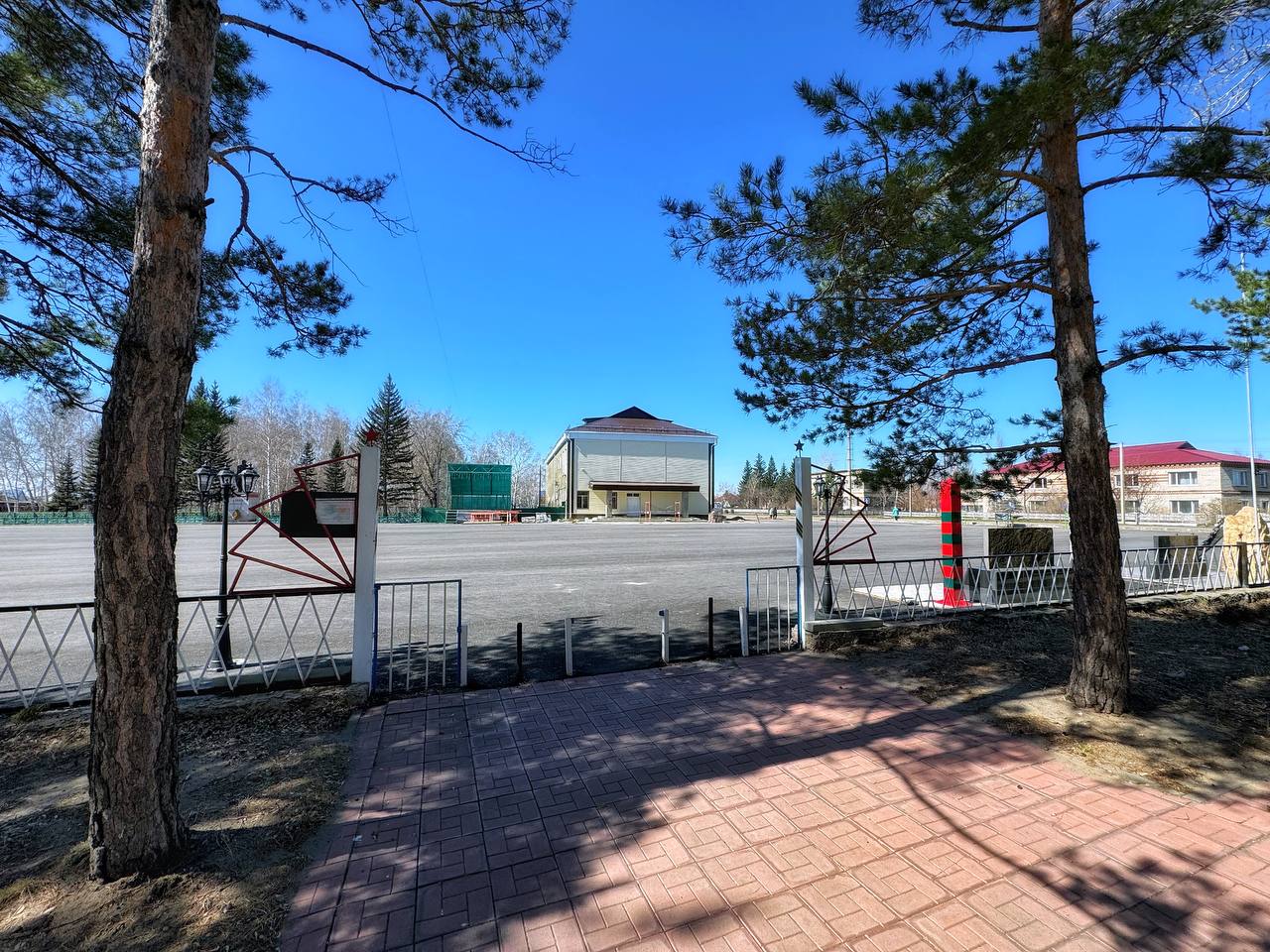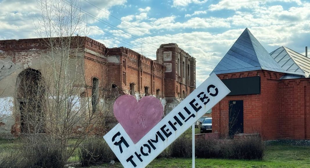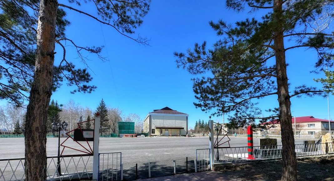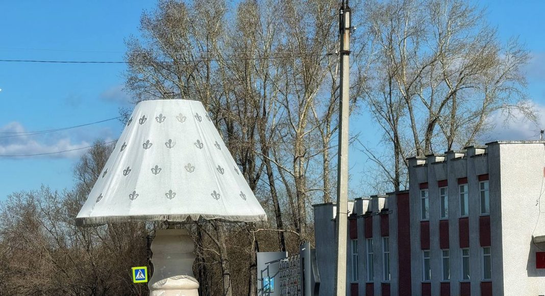 Привлекла внимание и сцена на центральной площади в виде полукупола. Неподалеку красуется, как элемент благоустройства светильник, большой и своеобразный. А еще жители Тюменцево активно занимались уборкой территории, даже внутри разрушенного храма.