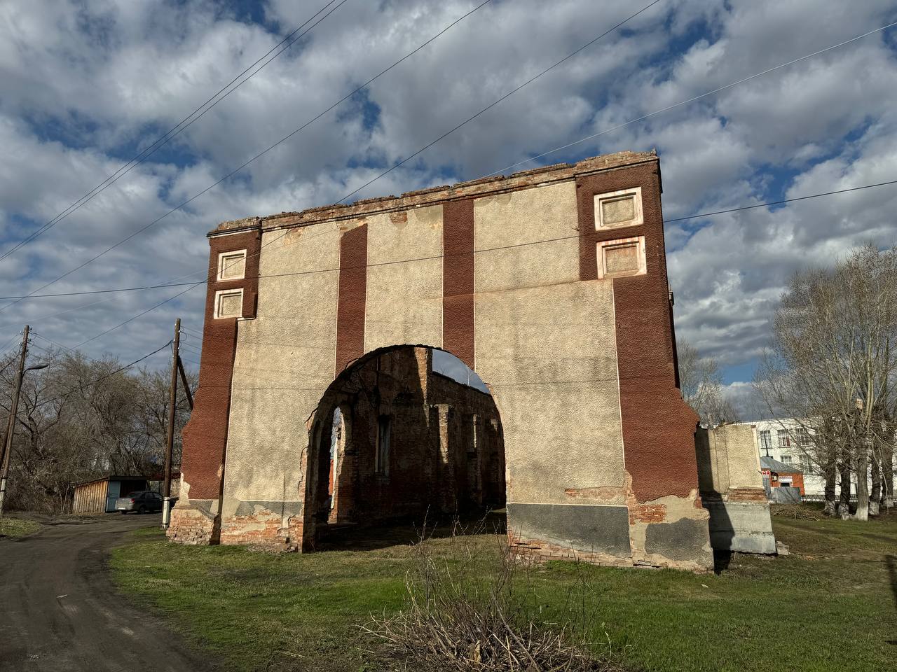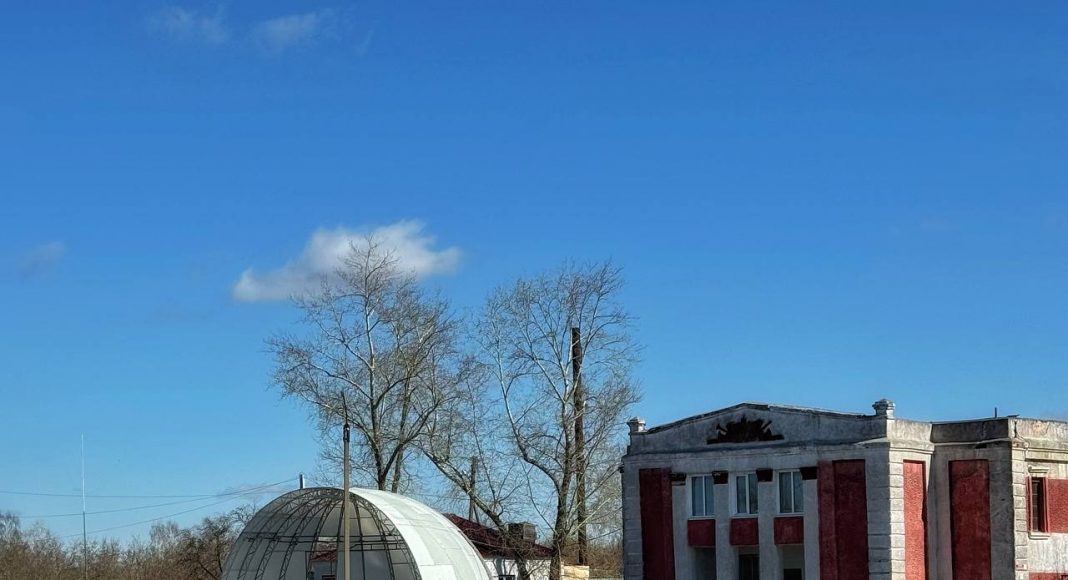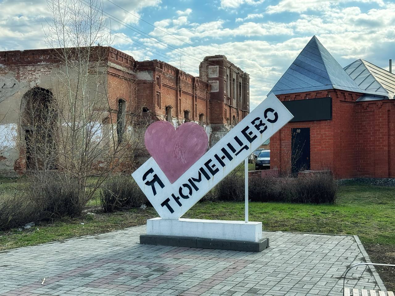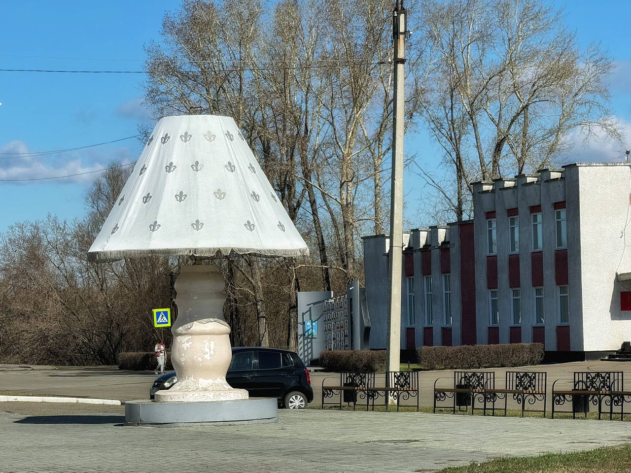Привлекла внимание и сцена на центральной площади в виде полукупола. Неподалеку красуется, как элемент благоустройства светильник, большой и своеобразный. А еще жители Тюменцево активно занимались уборкой территории, даже внутри разрушенного храма.