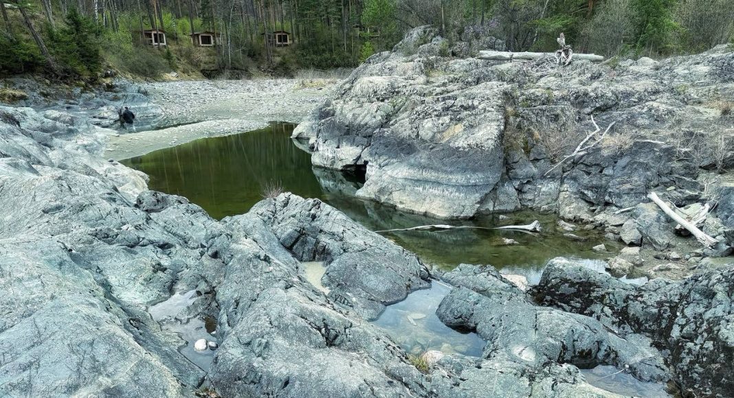 Неровное русло Катуни позволило летом появляться этим ванночкам. Дело в том, что весной в паводок, в большую воду, на месте ванночек протекает один из рукавов реки. Когда вода спадает, каменная гряда, как плотина, преграждает Катуни проход в этом направлении. В больших и маленьких скальных углублениях остается речная вода и прогревается на солнце.