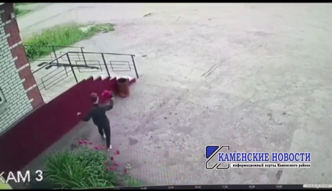Он оборвал цветы на благоустроенной территории возле одного из магазинов и попал на камеру видеонаблюдения.