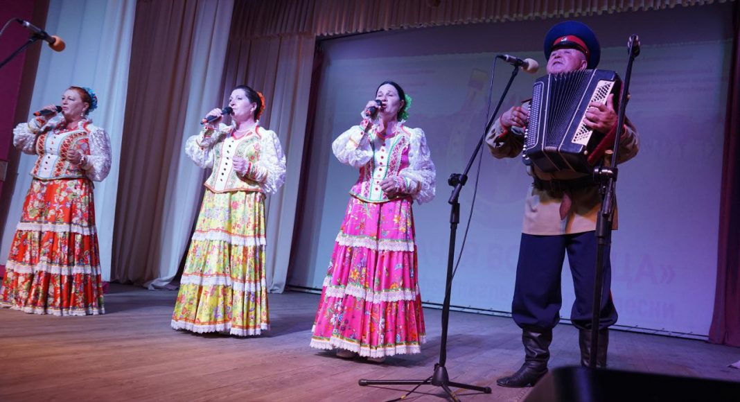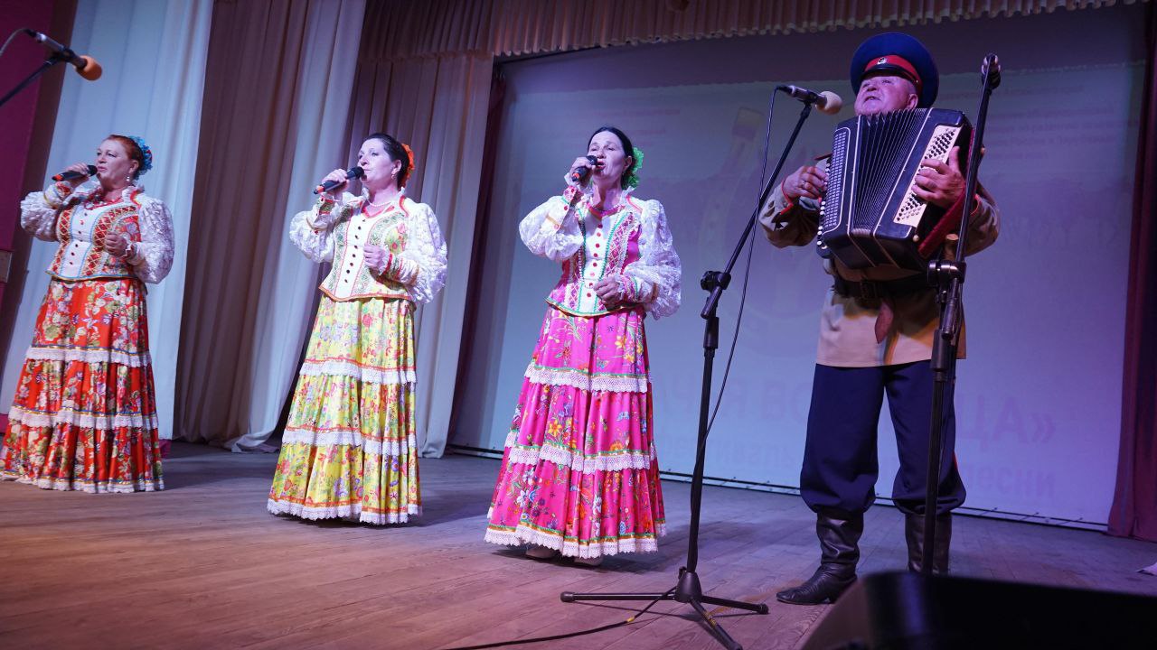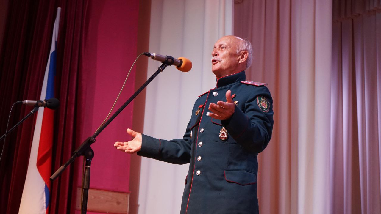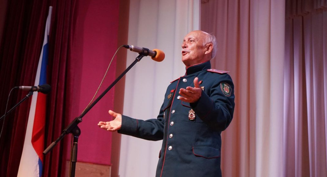 Песенную программу начал хуторской атаман сел Обское и Луговое, войсковой старшина Николай Умаров «Песней о летчиках».