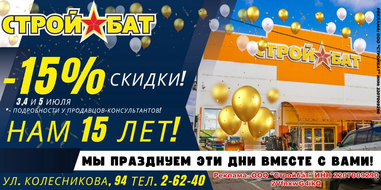 15 ЛЕТ! -15% СКИДКИ!