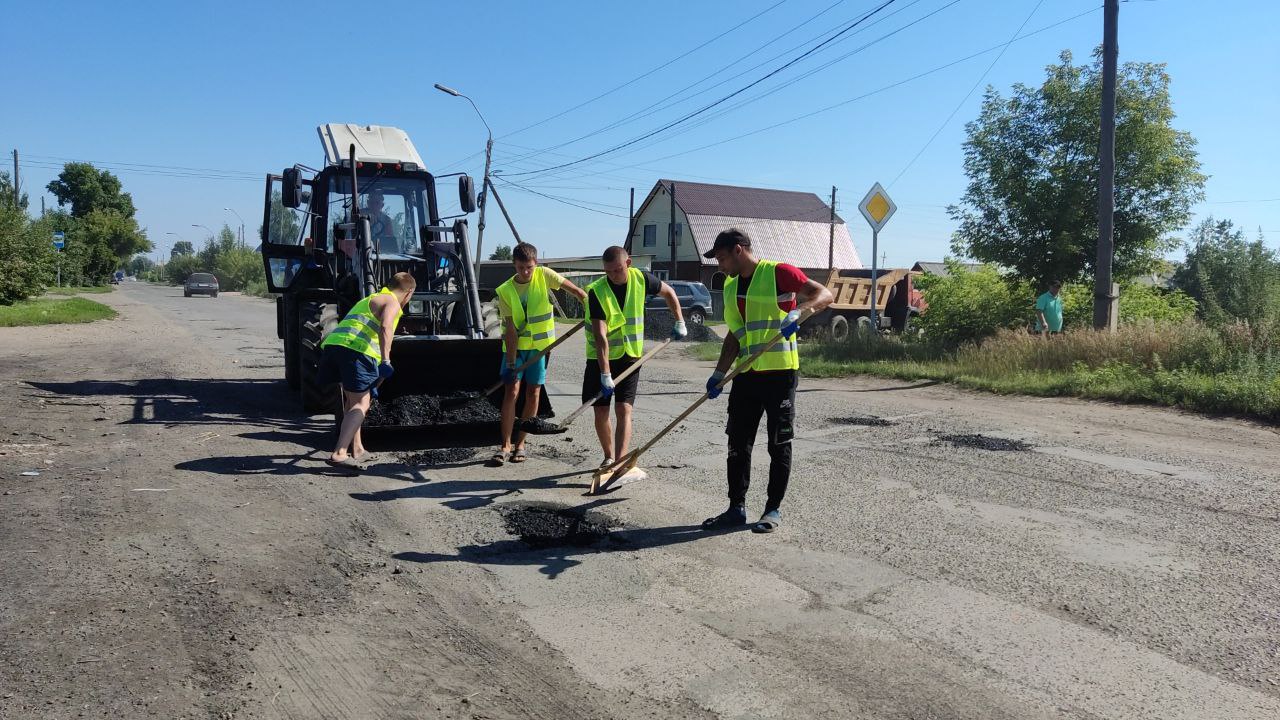 Алексей сказал, что среди группы инициативных молодых людей Камня-на-Оби нашелся человек, который выделил деньги на покупку асфальта. А потом попросил ребят помочь физической силой. А почему бы не помочь, решили парни. Собралось человек двенадцать. Приступили к работам в первой половине дня.