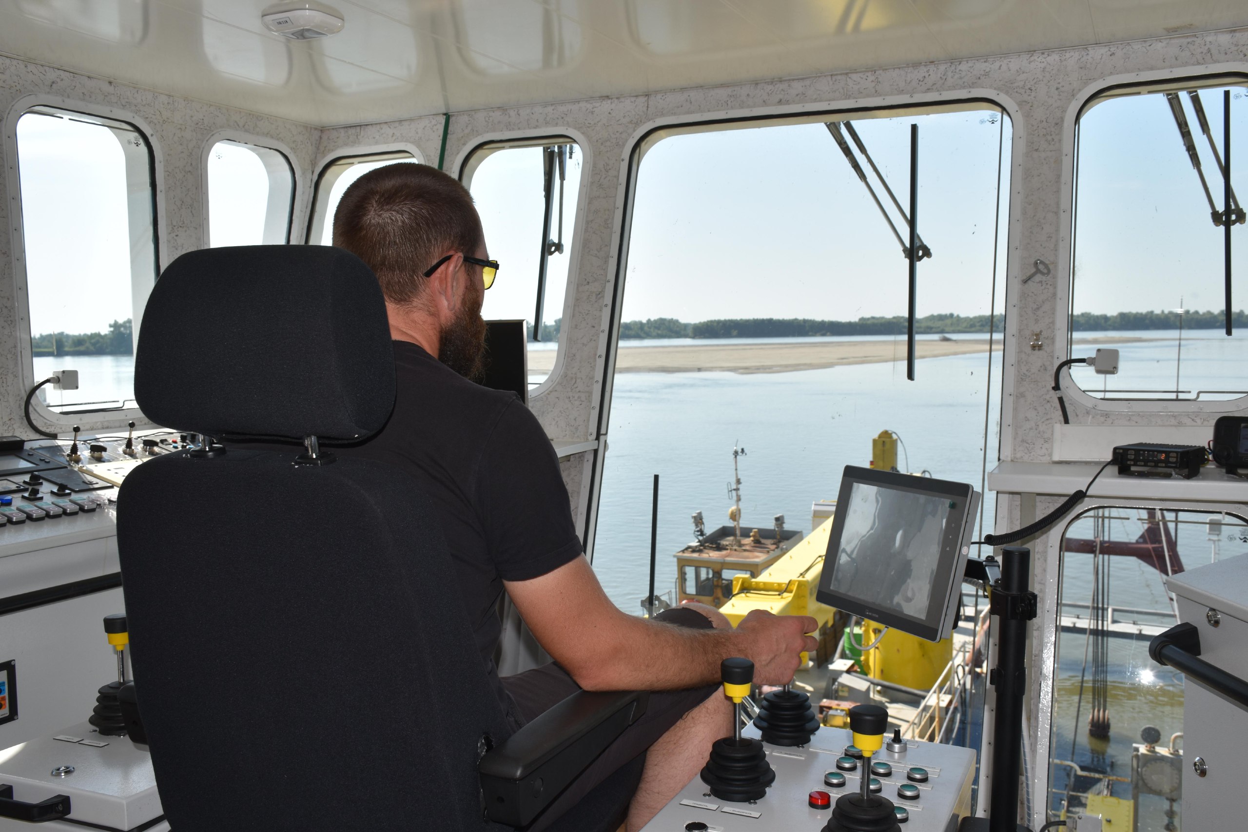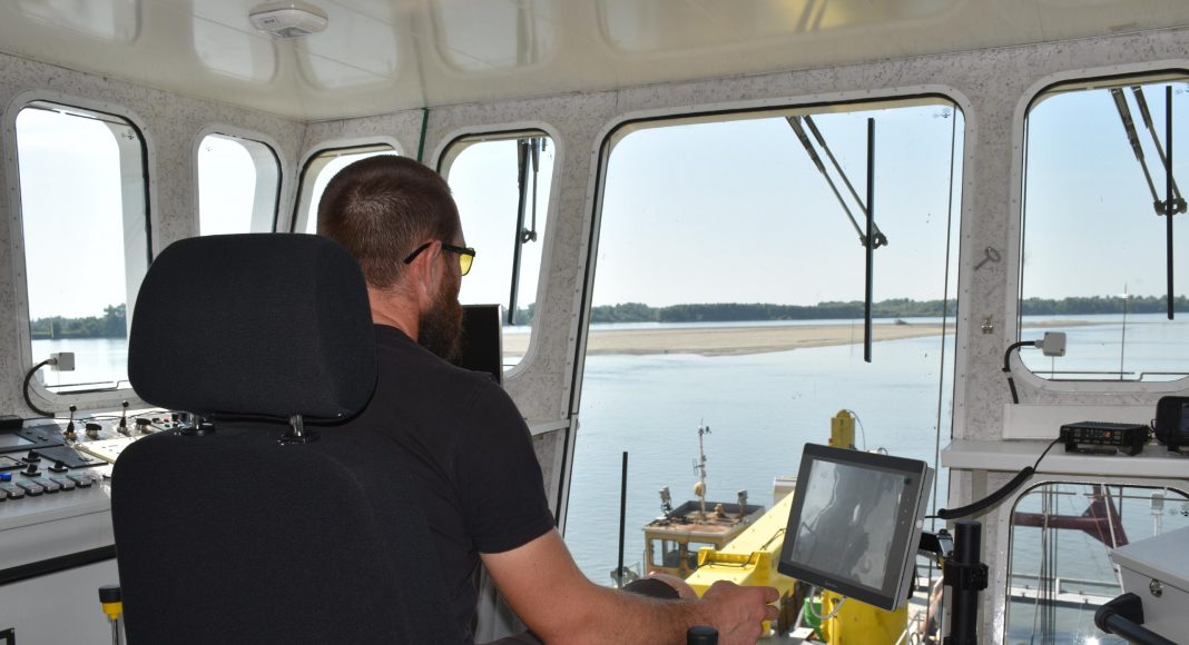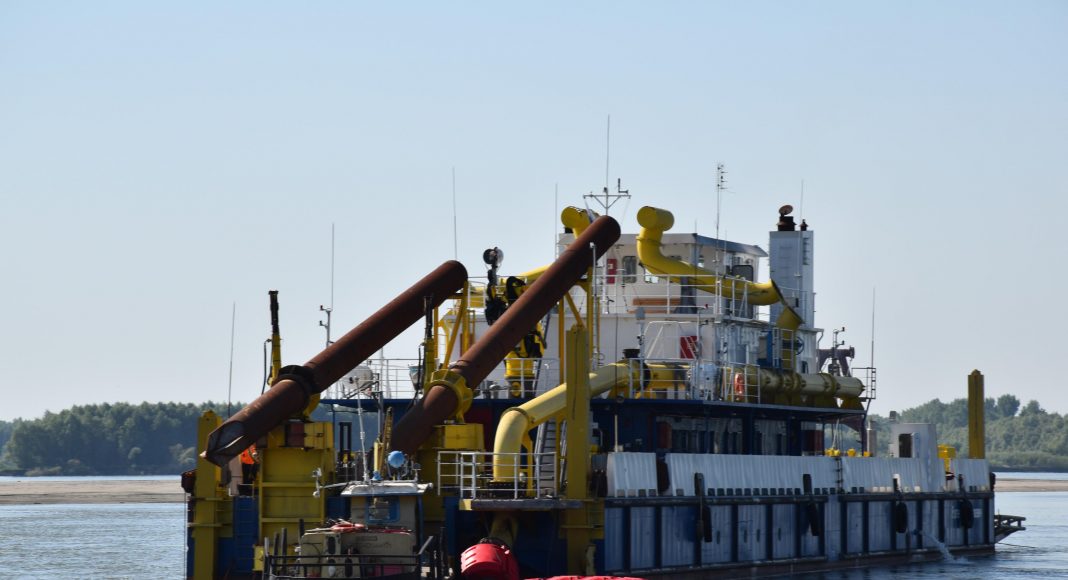 На судне побывал министр транспорта Алтайского края Антон Воронов, чтобы ознакомиться с процессом работы землесосного снаряда.