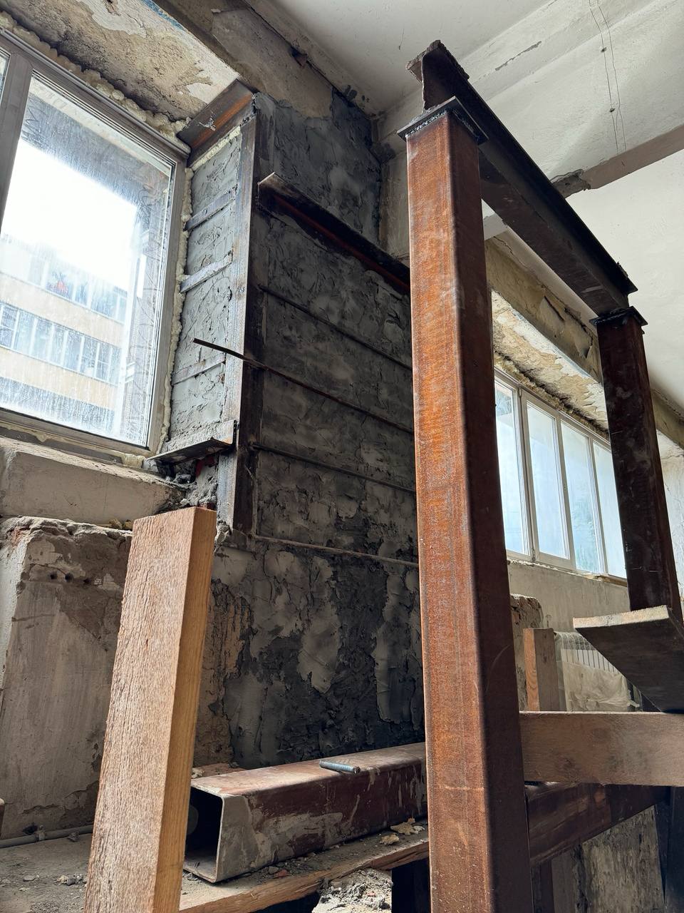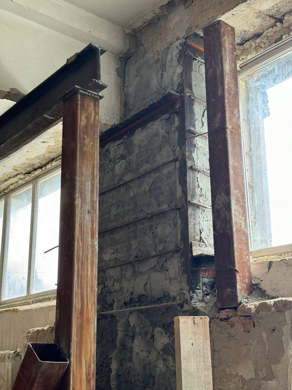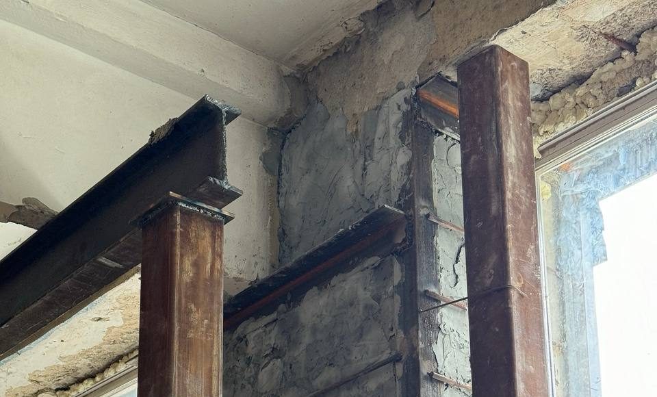 Было принято решение провести дефектовку. Выделили собственные средства на восстановление поврежденной стены. А это порядка 600 000 рублей. Был составлен проект. После проведения всех необходимых процедур бригада рабочих произвела демонтаж стены и заново ее выстроила. Обварили уголками, укрепили конструкцию.