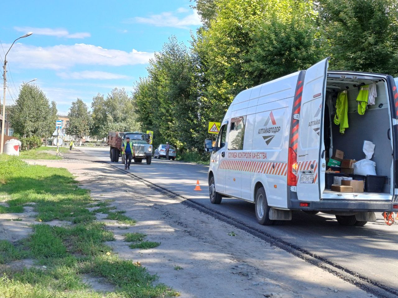 К середине августа подрядчике в лице Каменского филиала Центрального ДСУ уже выполнил работы по устройству нового асфальтобетонного покрытия. 13 августа краевая служба контроля качества «Алтайавтодора» брала «вырубки» покрытия готового участка, образцы асфальтобетонной смеси, инертных материалов. На данный момент пробы проходят исследования в лаборатории на качество.