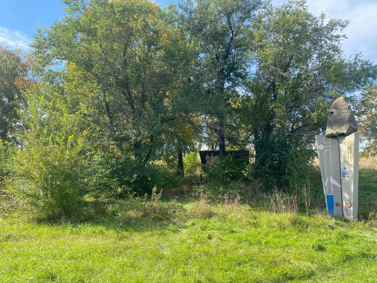 Совместные работы кипели на въезде в город. Именно здесь за оградкой установлен памятник. По имеющимся данным он стоит у места казни красноармейцев и коммунистов белыми после того, как они взяли город. Возможно, здесь же находится их братская могила, но данных об этом нет.