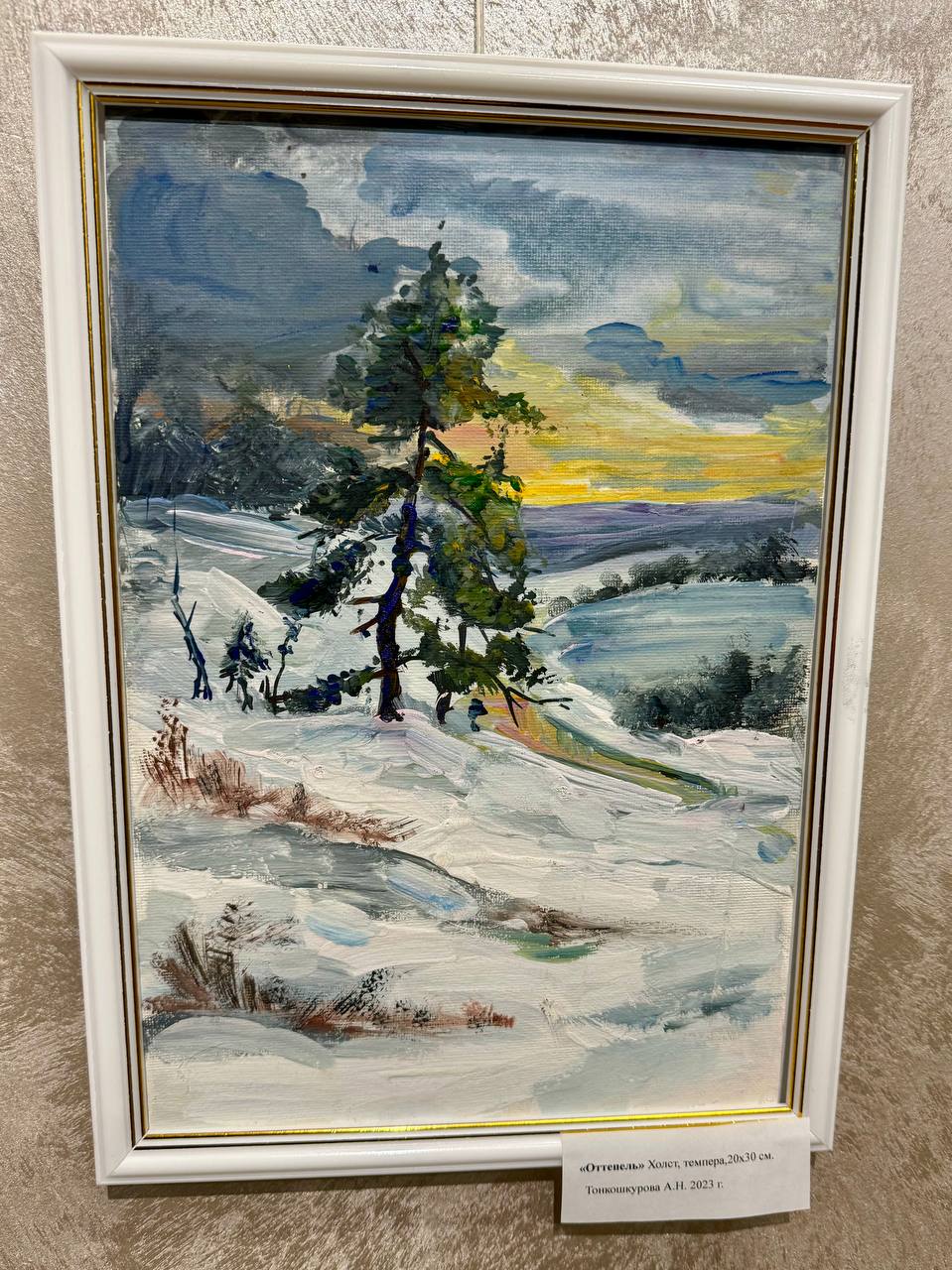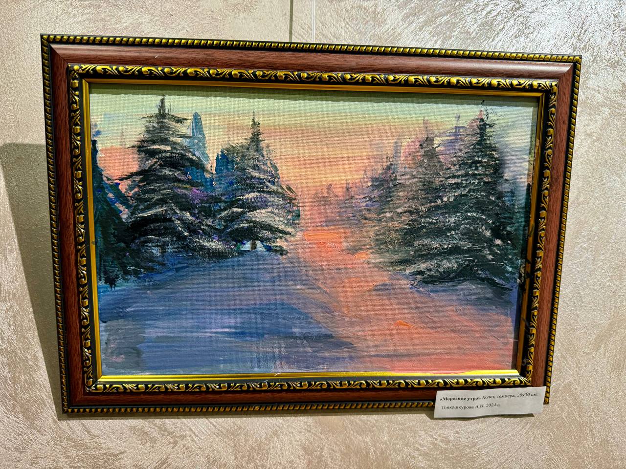 Недавно в центральной библиотеке открылась выставка начинающей художницы и педагога Каменской детской школы искусств Ангелины Тонкошкуровой, получившая краткое, но емкое название «Живопись души». Здесь представлены тринадцать картин, большая часть которых написана в течение этого года. За довольно высокой продуктивностью кроется постоянная борьба творческого человека в попытке увидеть и зафиксировать сложное, почти эфемерное понятие красоты.