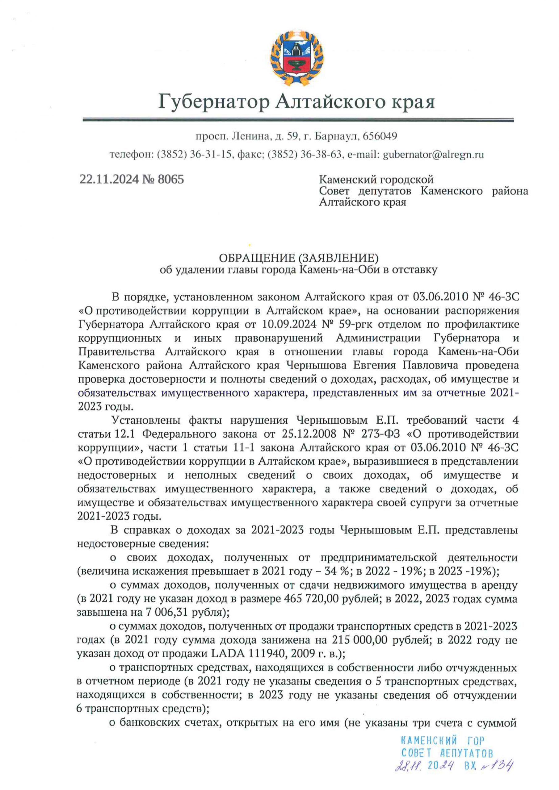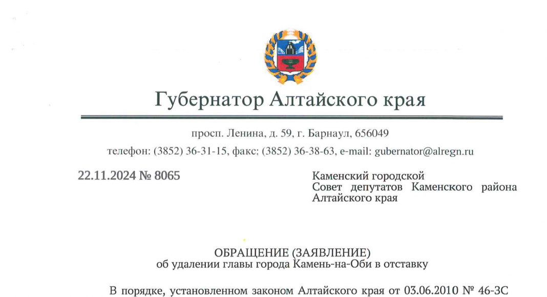 Губернатор Алтайского края заявил каменским депутатам о необходимости удаления Чернышова с поста главы и лишения депутатского статуса