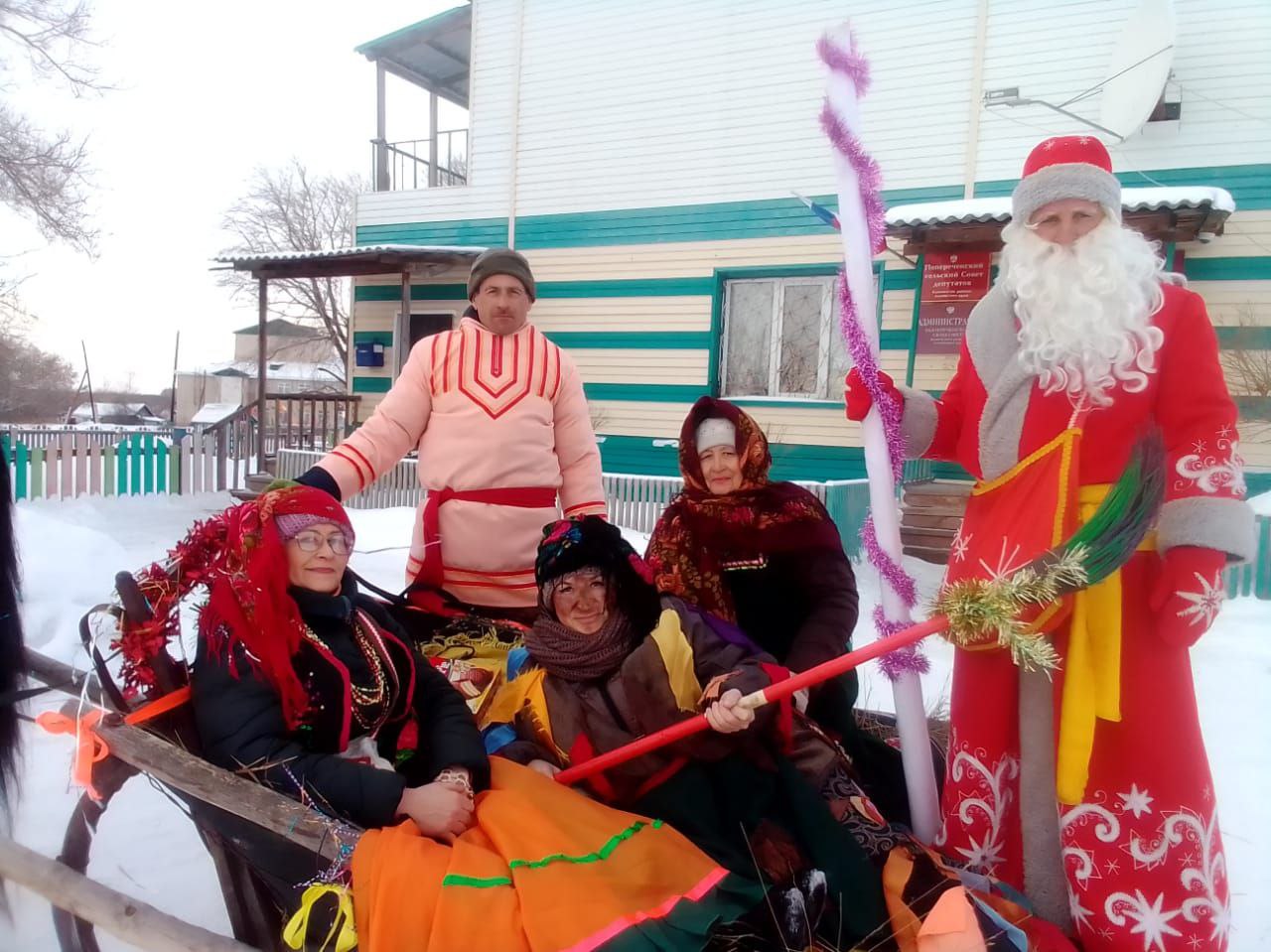И вот уже второй год подряд Попереченская новогодняя делегация в составе главы сельсовета Дворских Ирины, замглавы Суббот Светланы, главного специалиста Прокудиной Веры, истопника СДК Талу Михаила и нашего односельчанина Черникова Александра, который изумительно управлял ряженым конем, поздравляла односельчан с наступающим 2025 годом.