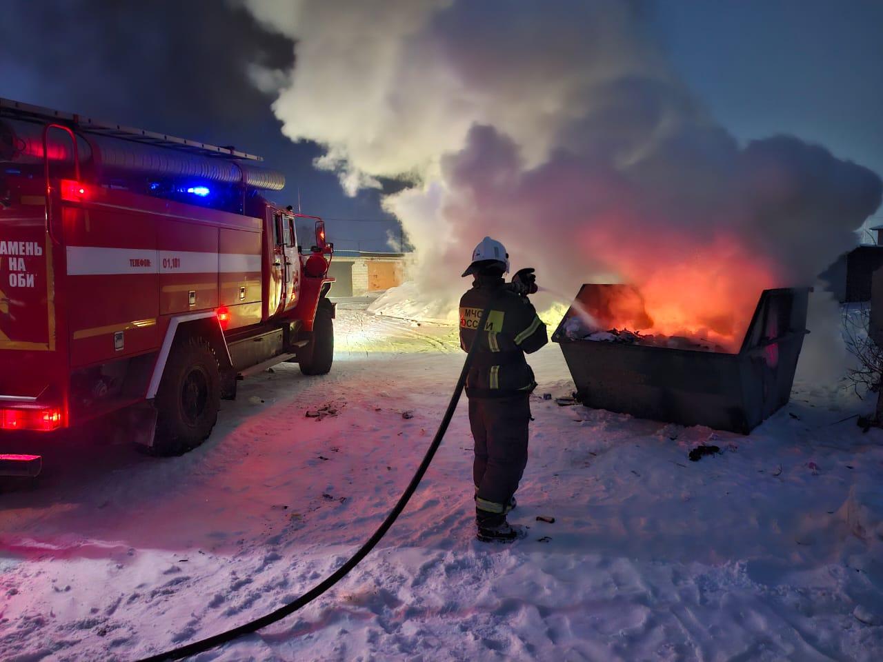 3 февраля в 18:54 на пульт дежурного диспетчера 54 пожарно-спасательной части поступило сообщение о возгорании в жилом секторе. Горел мусорный бункер, в который кто-то из местных жителей решил высыпать золу.