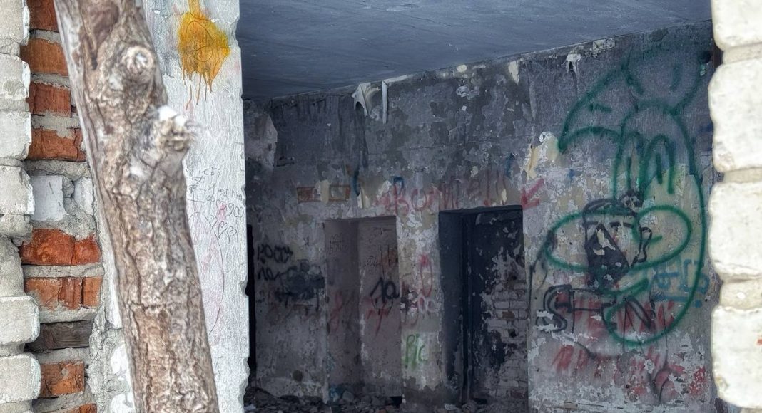 Возле детского сада «Умка» по улице Ленинградской буквально через дорогу — очередное кирпичное двухэтажное уныние, рай для времяпрепровождения подростков. На входе, грозясь упасть кому-нибудь на голову, болтается кирпич. Окна выбиты, отопление давно срезано, однако отчетливо видно, что жизнь здесь кипит. И это очередная точка, вызывающая опасения, в том числе, антитеррористического характера.