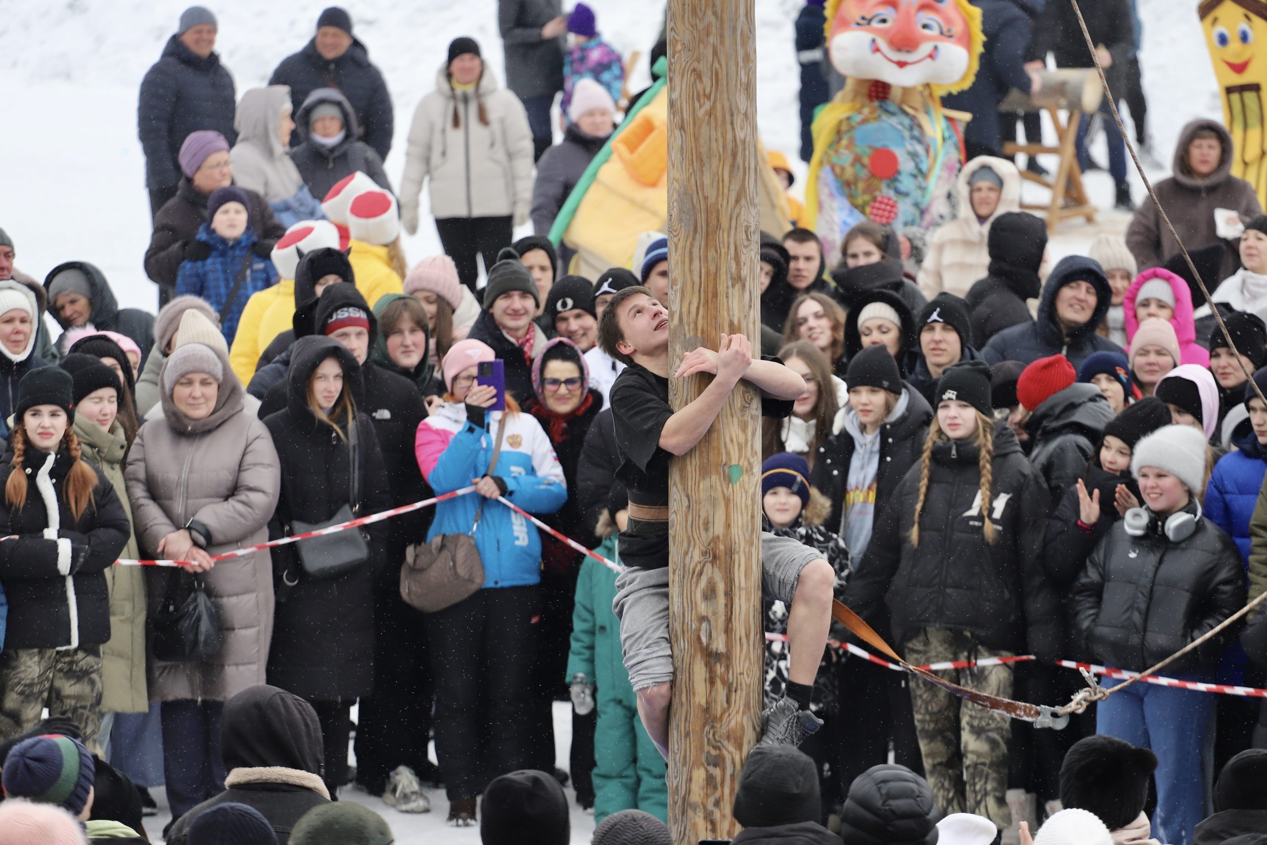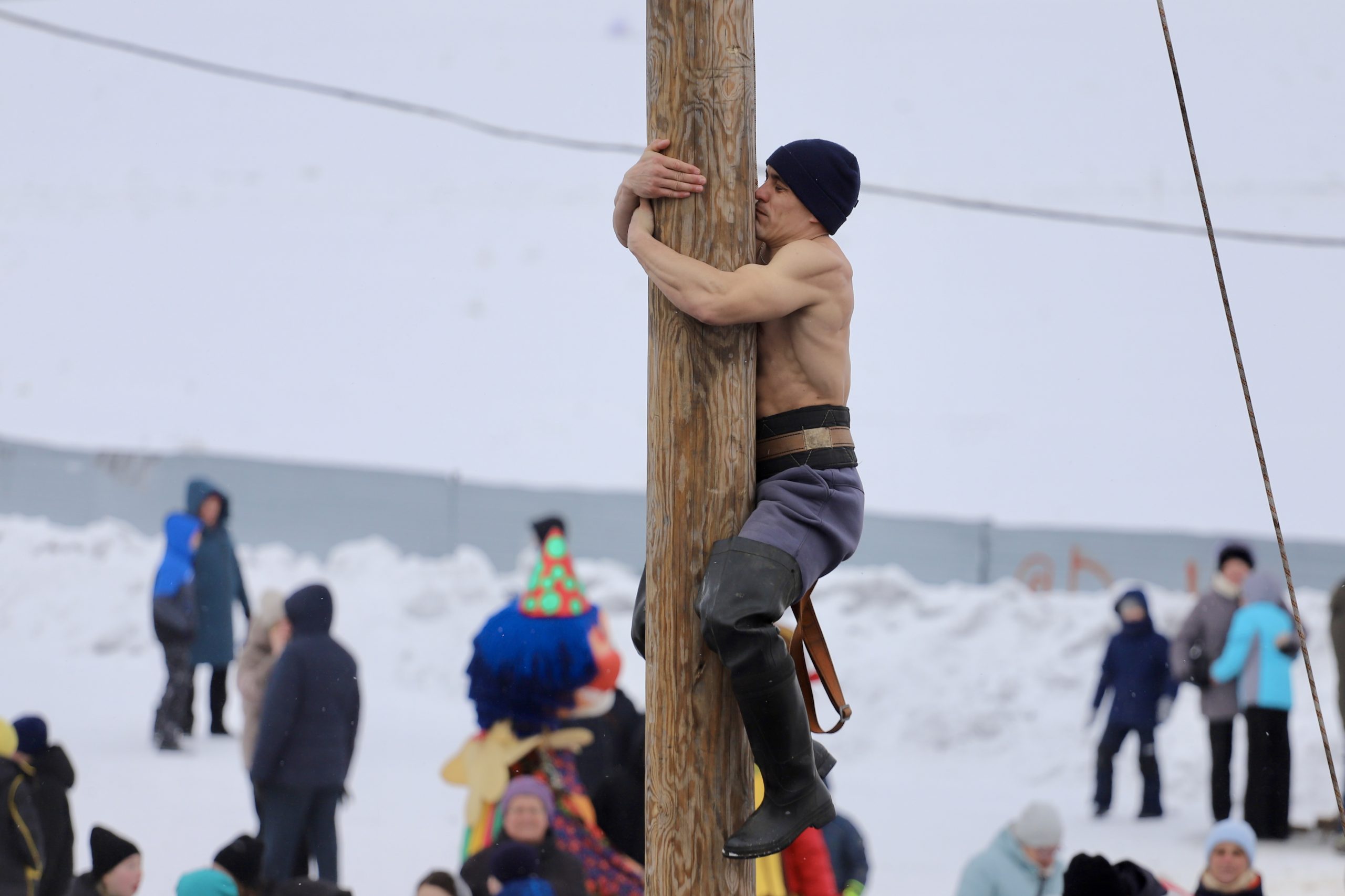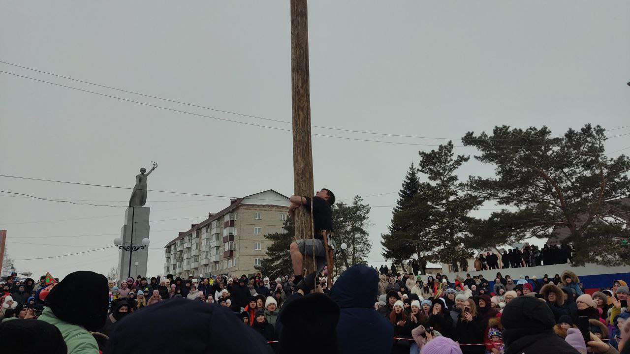 Конкурсы и народные забавы завершатся сжиганием сумела Масленицы прошли на ура! Самым сложным оказалось покорение столба — это было под силу лишь трем мужчинам из заявившихся.