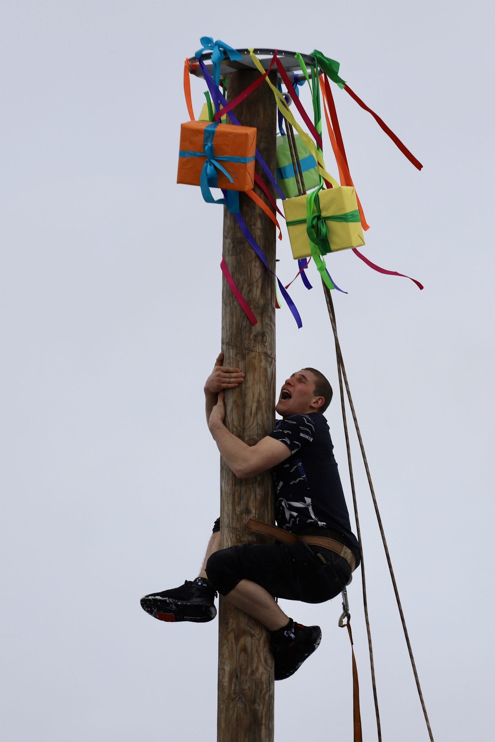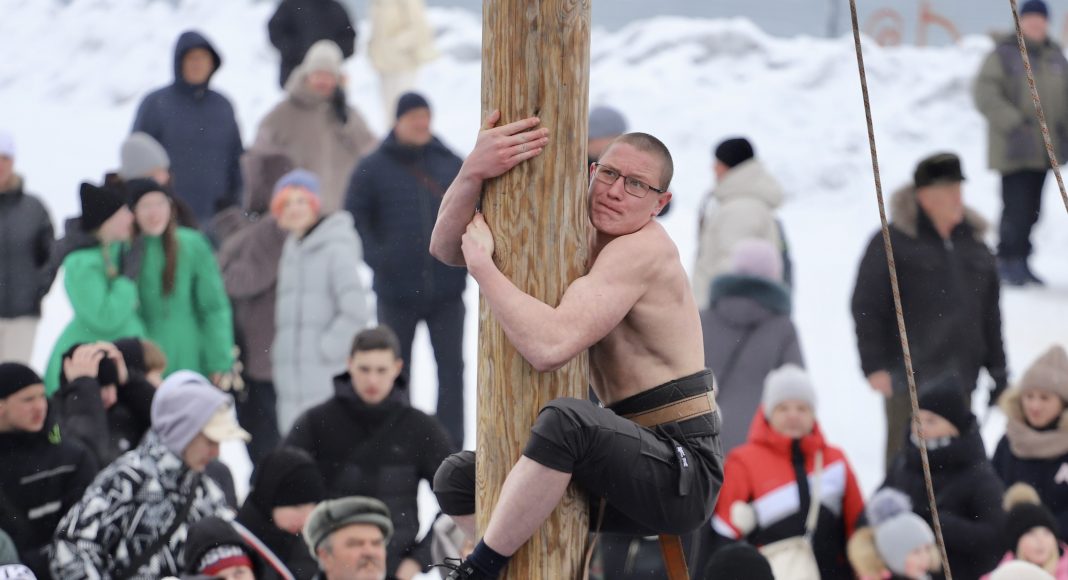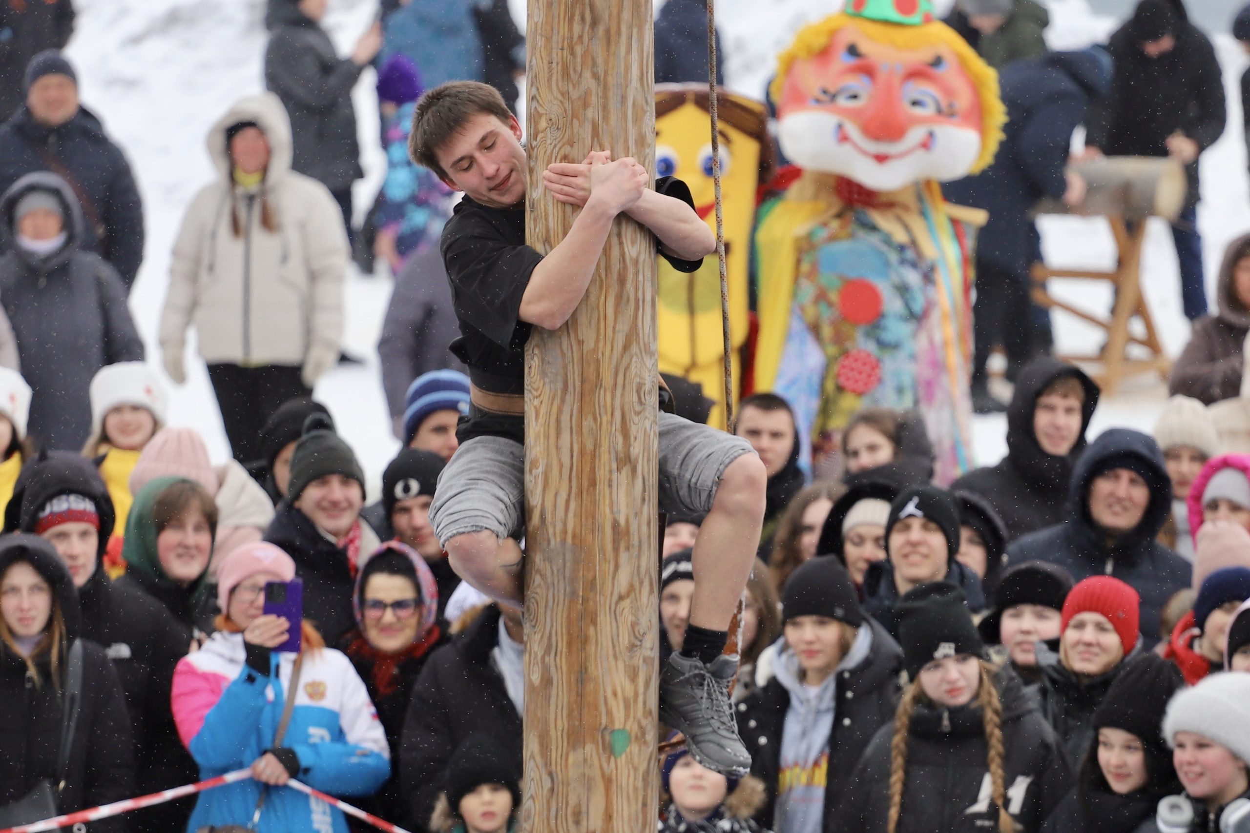 Конкурсы и народные забавы завершатся сжиганием сумела Масленицы прошли на ура! Самым сложным оказалось покорение столба — это было под силу лишь трем мужчинам из заявившихся.