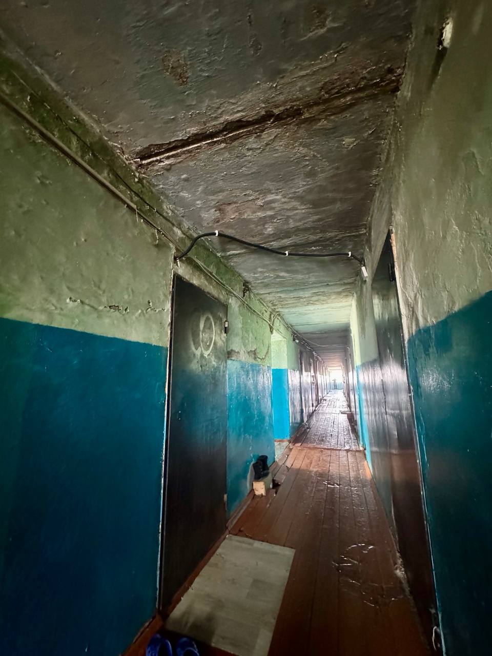 Елизавета Яшкина – пенсионерка, возле своей квартиры, в своем закутке она делала ремонт своими силами, не надеясь на помощь «Града», которому отчисляет ежемесячно с пенсии. Люди признаются, что уже обсуждали самостоятельный ремонт, если районная администрация, действительно, поможет с приобретением материалов. Подумали и поняли, что просто физически будут не в состоянии работать на высоте, тем более, стены все в старых проводах. Получить травмы никому не хочется.