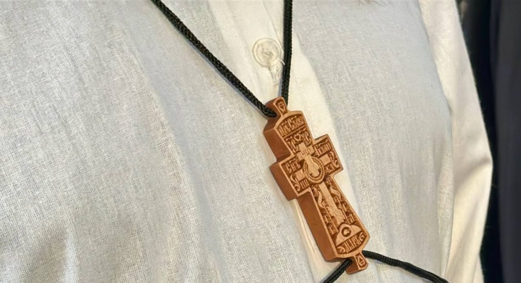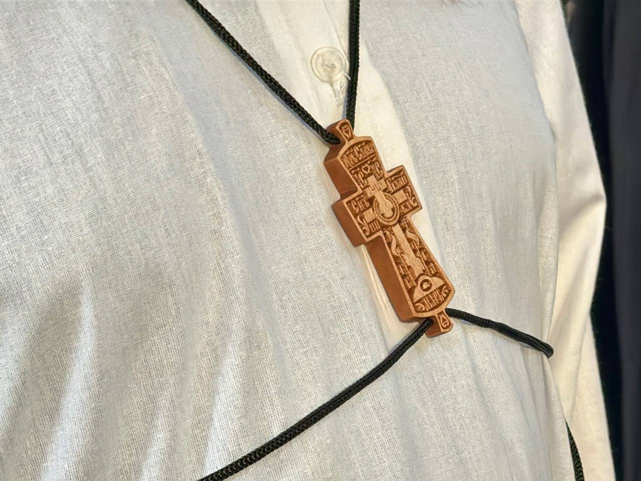 Непосредственно перед самим постригом епископ трижды перед каждым из них бросает ножницы на пол. Будущие монахи поднимают их и отдают ему вновь и вновь. Таким образом, тем, кто решил круто изменить свою жизнь, дается последний шанс передумать, отказаться от решения, не поднимать ножницы, развернуться и уйти. После состригается часть волос – это символ того, что человек отдает от себя Богу. А далее – новые облачения. Черная мантия без рукавов символизирующая ангельские крылья. Клобук на голове – словно шлем воина, собравшегося на битву. Четки в руках – духовный меч молитвы.