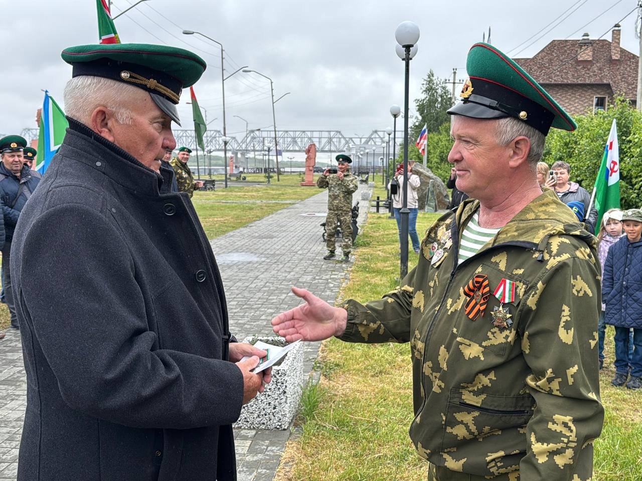 Торжественное построение прошло у мемориальной композиции, которую защитники рубежей за собственные средства установили на центральной набережной в 2018 году. Позже их примеру последовали и другие рода войск — десантники, моряки и внутренние войска.