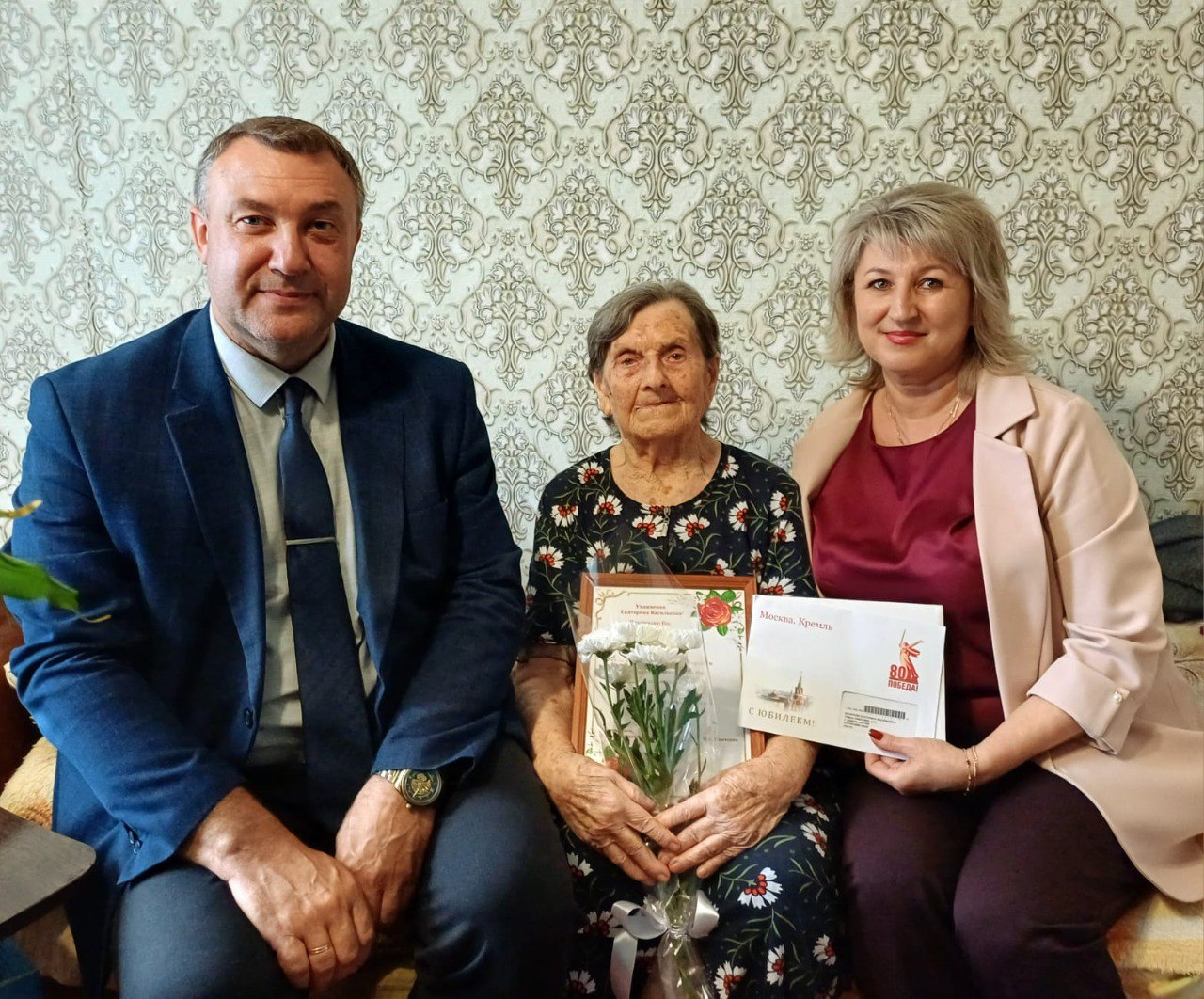 Поздравили юбиляршу с солидной датой Павел Глотов, заместитель главы Администрации района и Марина Ульянова, начальник Управления социальной защиты населения по Каменскому, Крутихинскому и Баевскому районам.