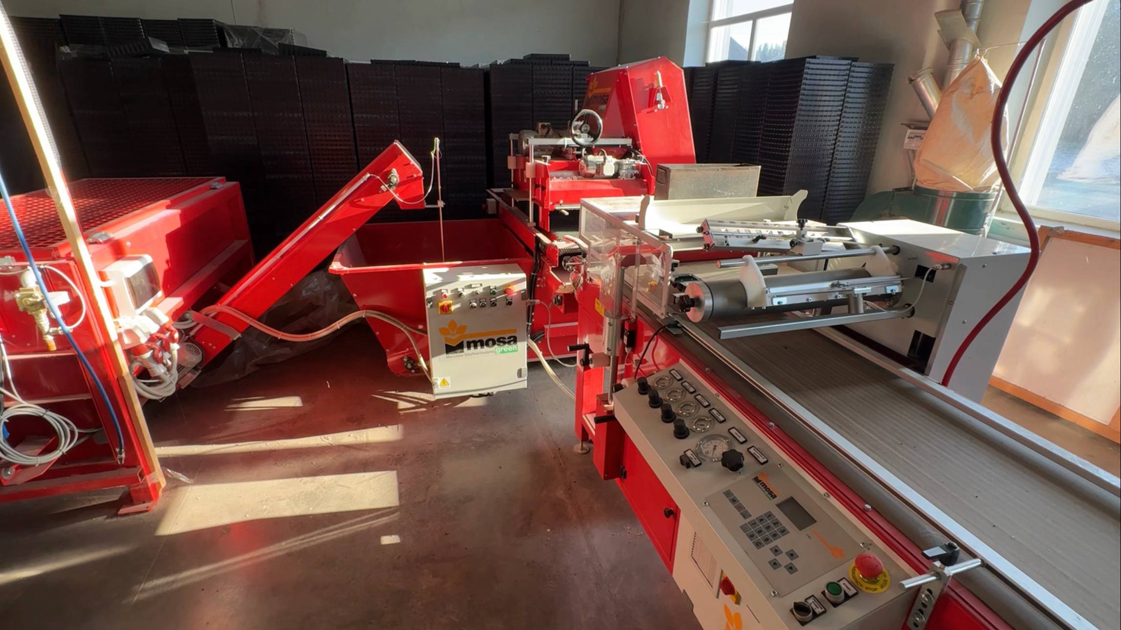 «Здесь происходит посев семян в кассеты, — показывает с гордостью Роман, — посев происходит автоматизировано, но два человека подают торф в миксер, один человек кассеты подает непрерывно, два человека просматривают, чтобы пропусков не было в каждой ячейке.