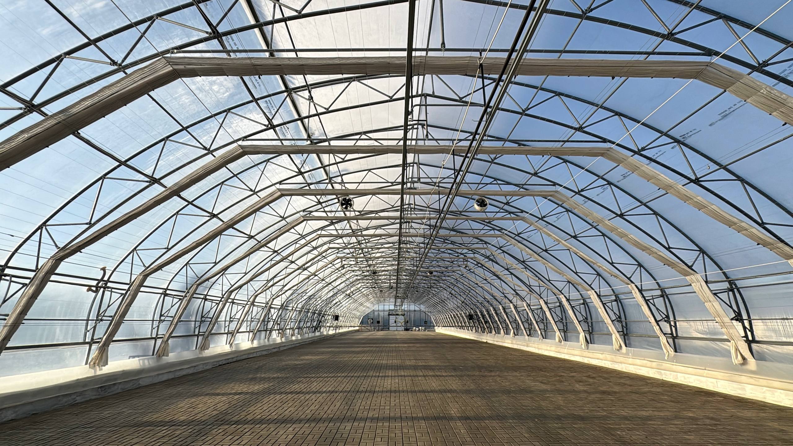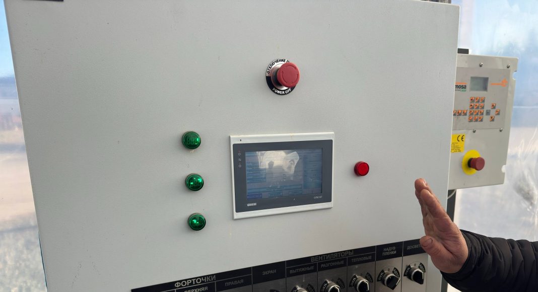 В теплице установлено автоматическое затенение, постоянно мониторится температура снаружи и внутри помещения, скорость ветра. Метеостанция считывает, сколько энергии солнечных лучей поступает в теплицу и если они превышают допустимый показатель, начинается затенение, происходит автоматическое зашторивание. Также здесь имеются форточки для вентиляции. Когда температура воздуха в теплице повышается, они автоматически открываются, включаются разгонные вентиляторы.
