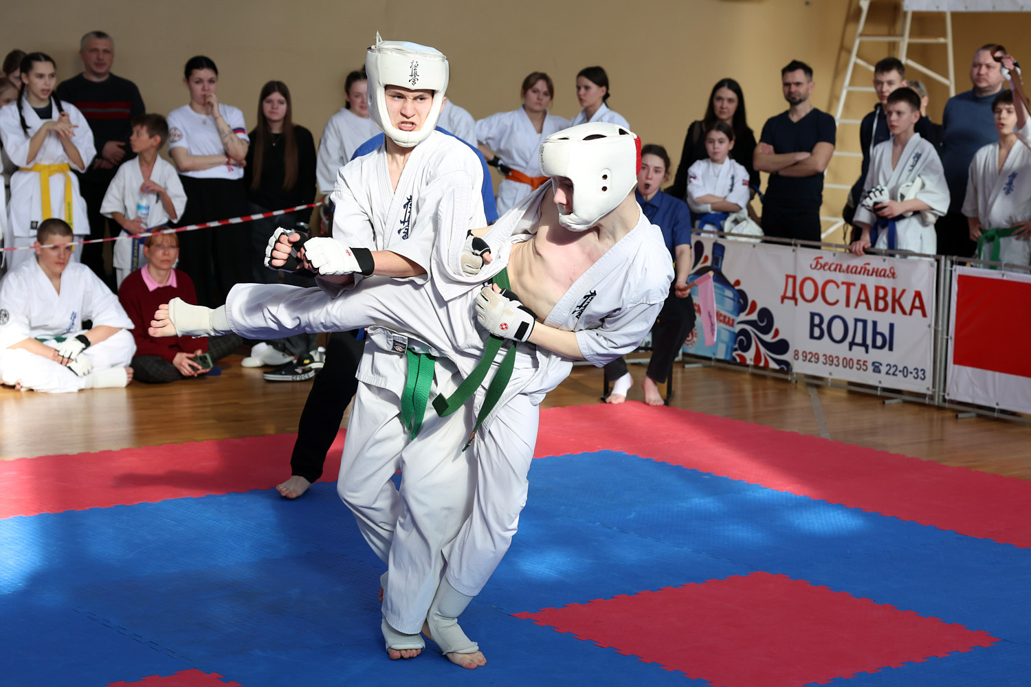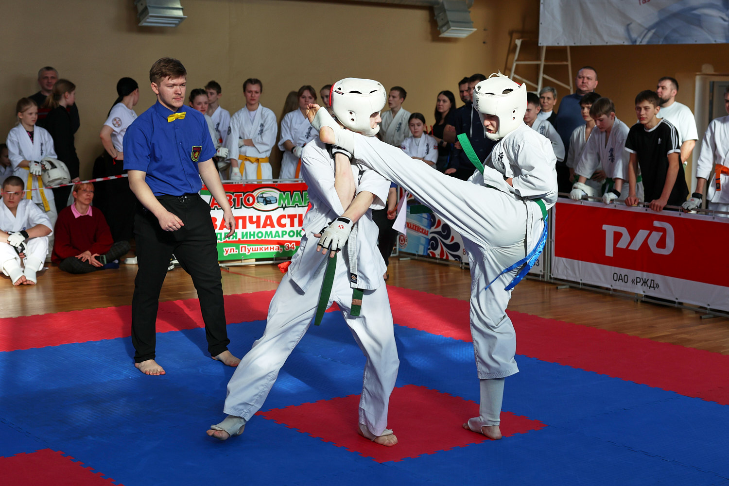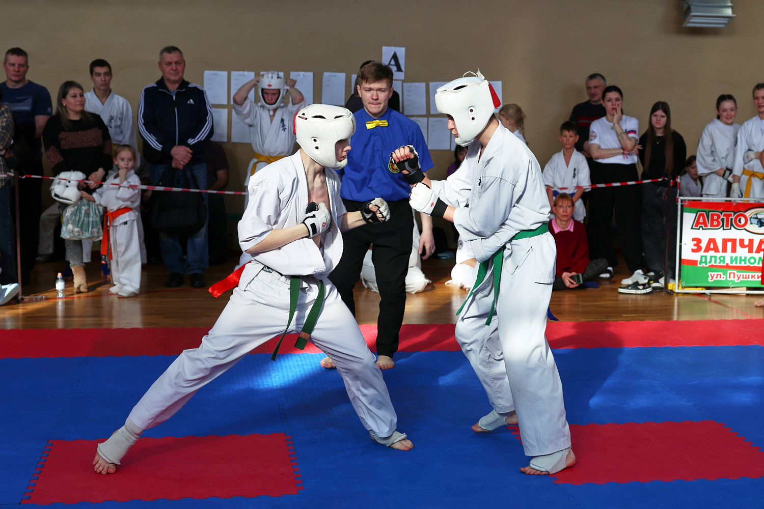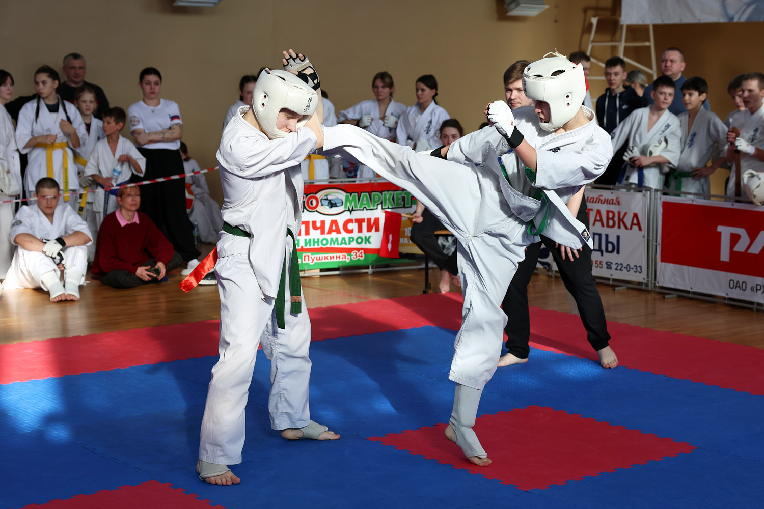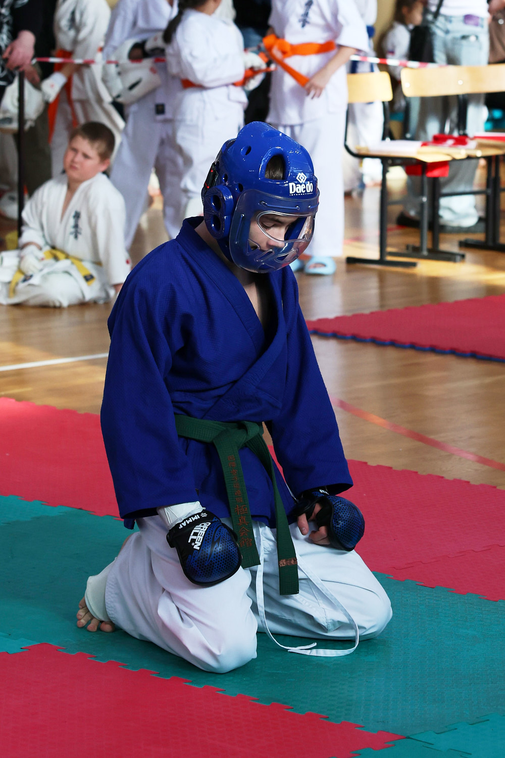 В этот день нешуточные баталии развернулись сразу на трёх татами. Бои в стиле джутайдо по версии «К» — это зрелищные поединки, по-киношному техничные. Но на самом деле это жёсткое полноконтактное единоборство, а не боевая голливудская хореография: эффектные (и эффективные) удары ногой, грады атак в корпус, сокрушительные удары кулаками в голову. Для джутайдо и амуниция серьезнее — щитки, шлемы с пластиковым визором, полностью защищающие голову.