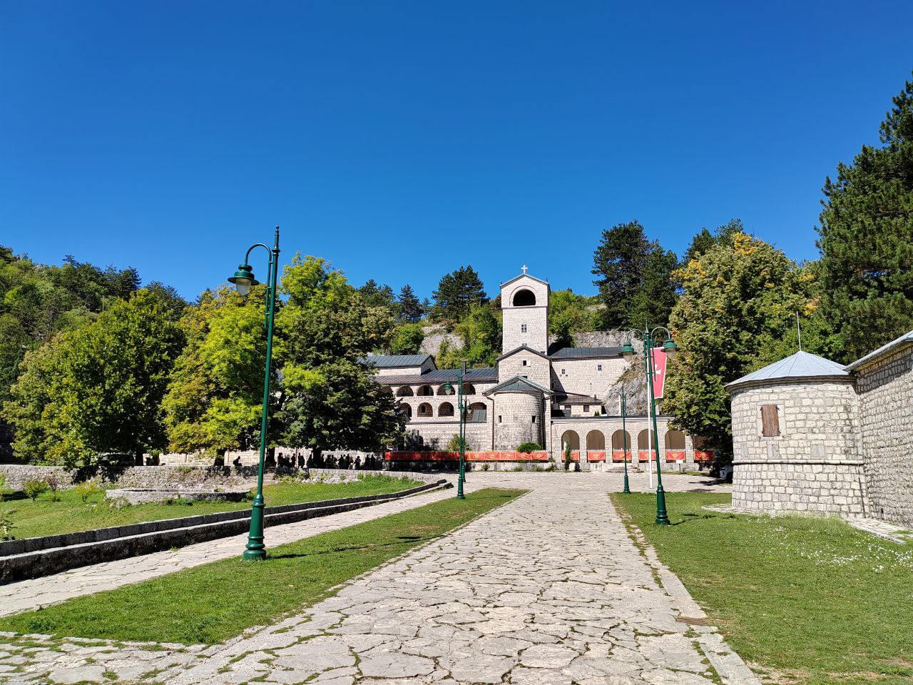 Вообще, столичный код здесь вписан — местами кровью — в каждый кирпич старинных зданий, в каждый булыжник мостовой. Ещё в XV веке господарь княжества Зета (так называлась Черногория в те времена, когда её сильно колбасило от средневековых геополитических перипетий) основал здесь Цетинский монастырь. Он стоит по сей день, хоть его за пять столетий несколько раз «разбирала» на кирпичики какая-нибудь очередная война.