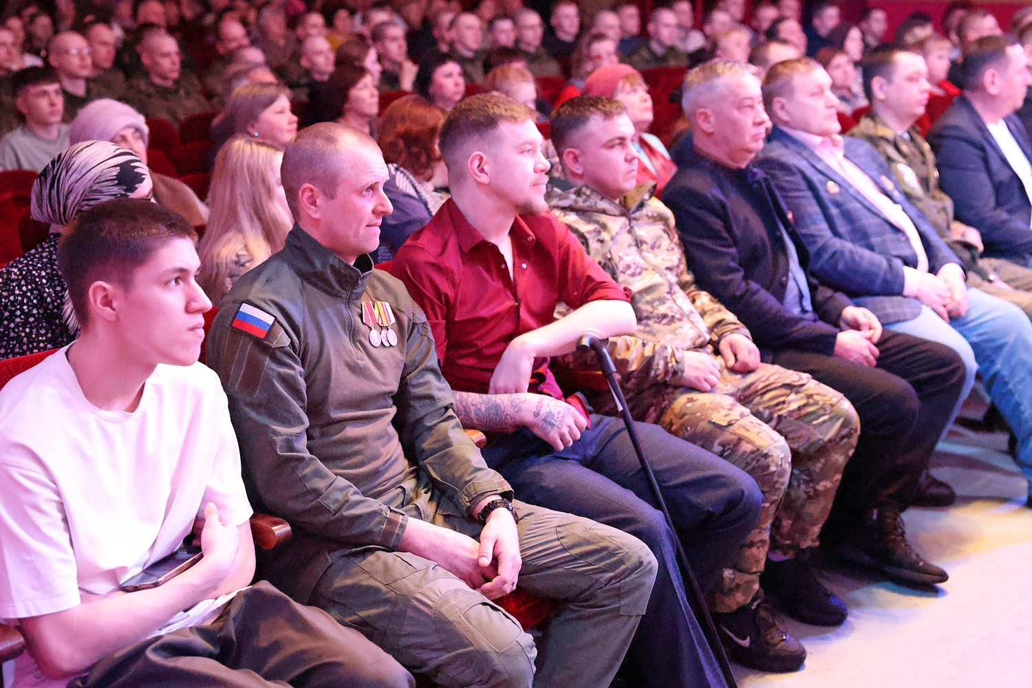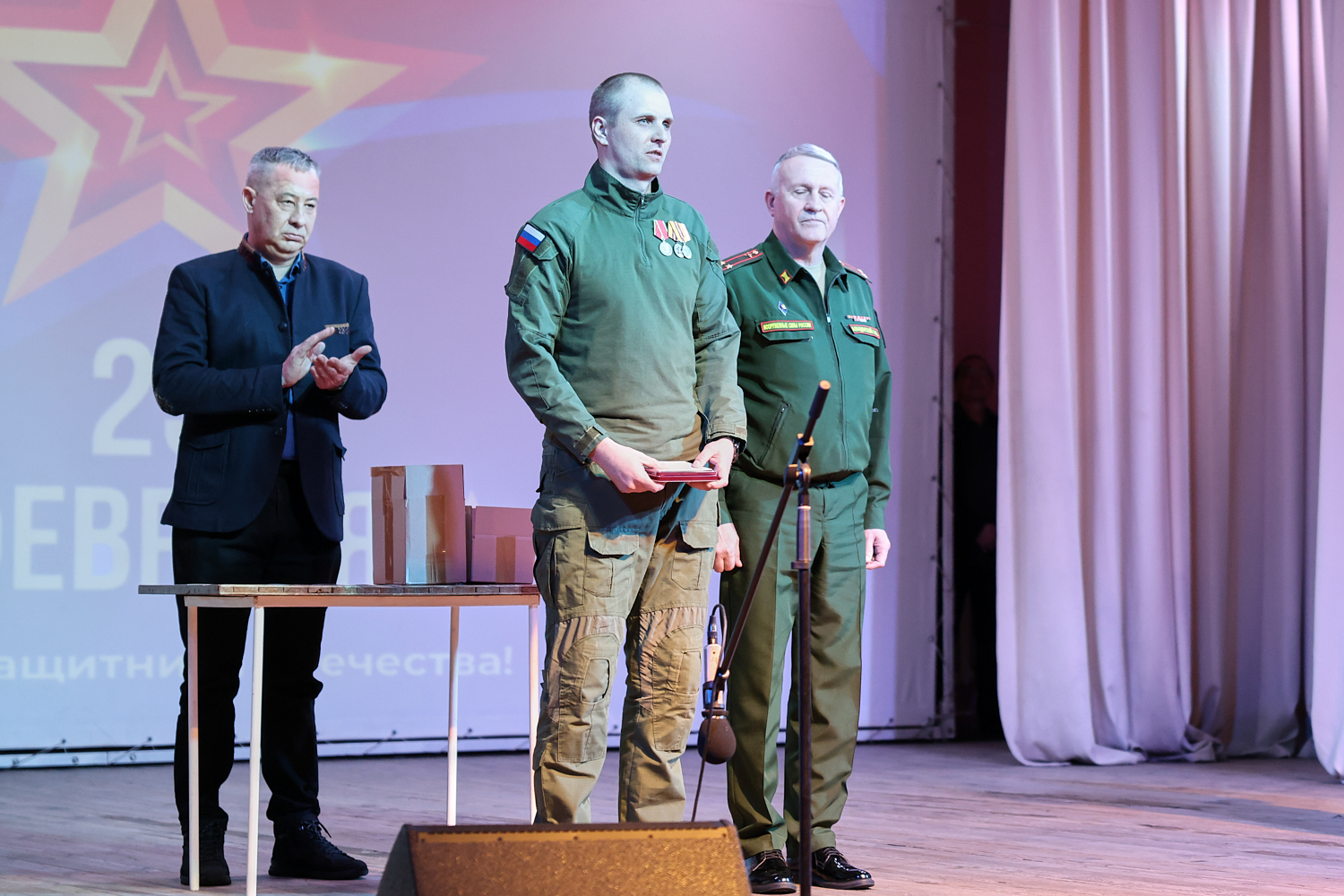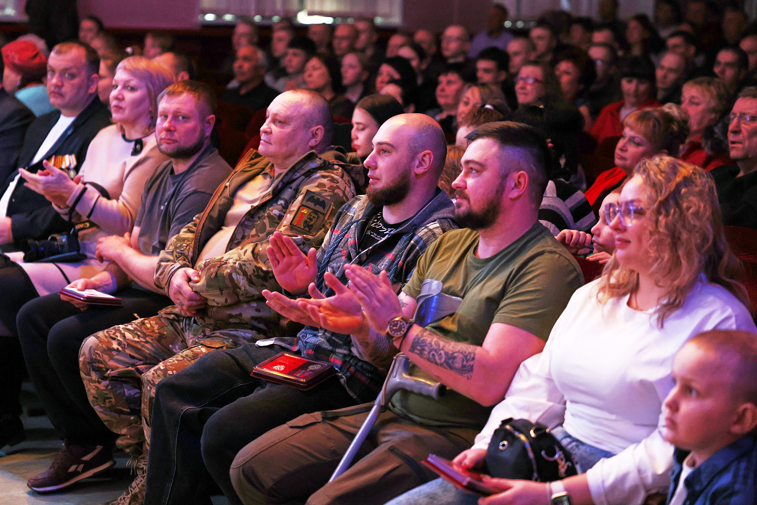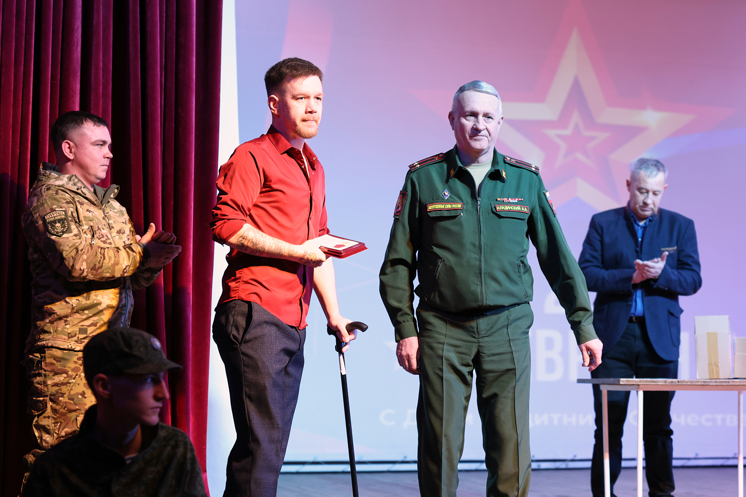 Торжественное мероприятие прошло 23 февраля в районном Дворце культуры. Правда, не все ребята смогли подняться на сцену, чтобы получить медаль. К некоторым из них Андрей Аладинский, военный комиссар Каменского, Крутихинского, Тюменцевского районов, спускался в зал. Серьезные травмы еще не зажили, поэтому некоторые герои СВО еще скованны в движениях. Один из парней отсутствовал и награду в торжественной обстановке получила его супруга с маленькой дочкой.
