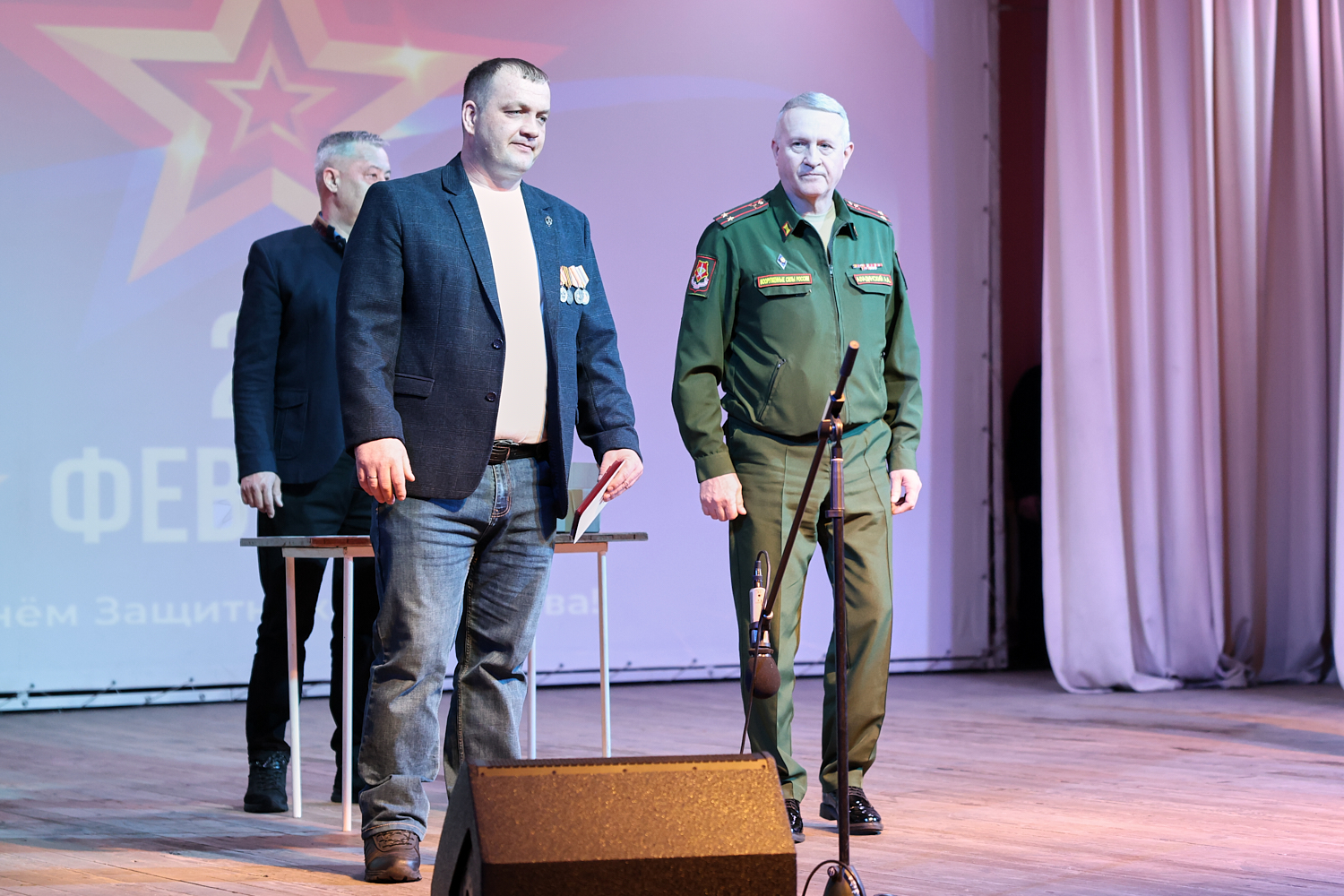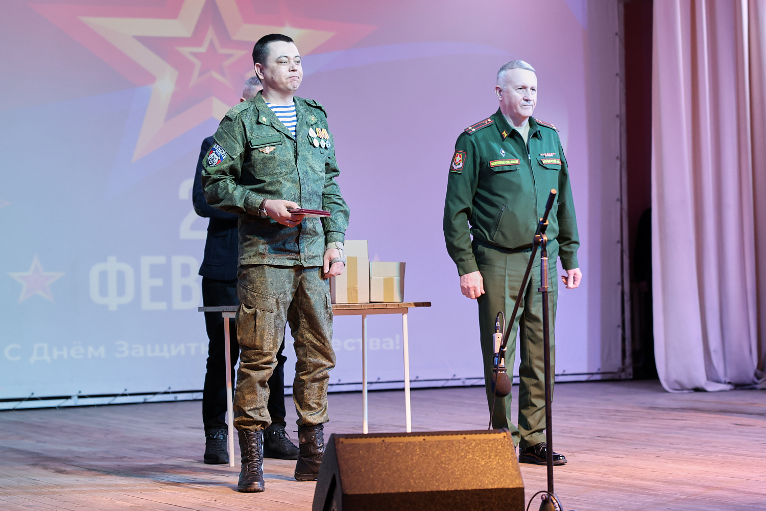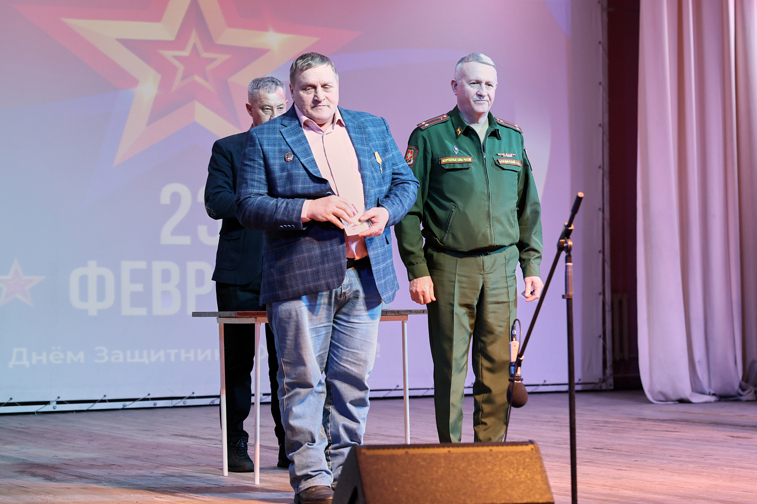 Торжественное мероприятие прошло 23 февраля в районном Дворце культуры. Правда, не все ребята смогли подняться на сцену, чтобы получить медаль. К некоторым из них Андрей Аладинский, военный комиссар Каменского, Крутихинского, Тюменцевского районов, спускался в зал. Серьезные травмы еще не зажили, поэтому некоторые герои СВО еще скованны в движениях. Один из парней отсутствовал и награду в торжественной обстановке получила его супруга с маленькой дочкой.