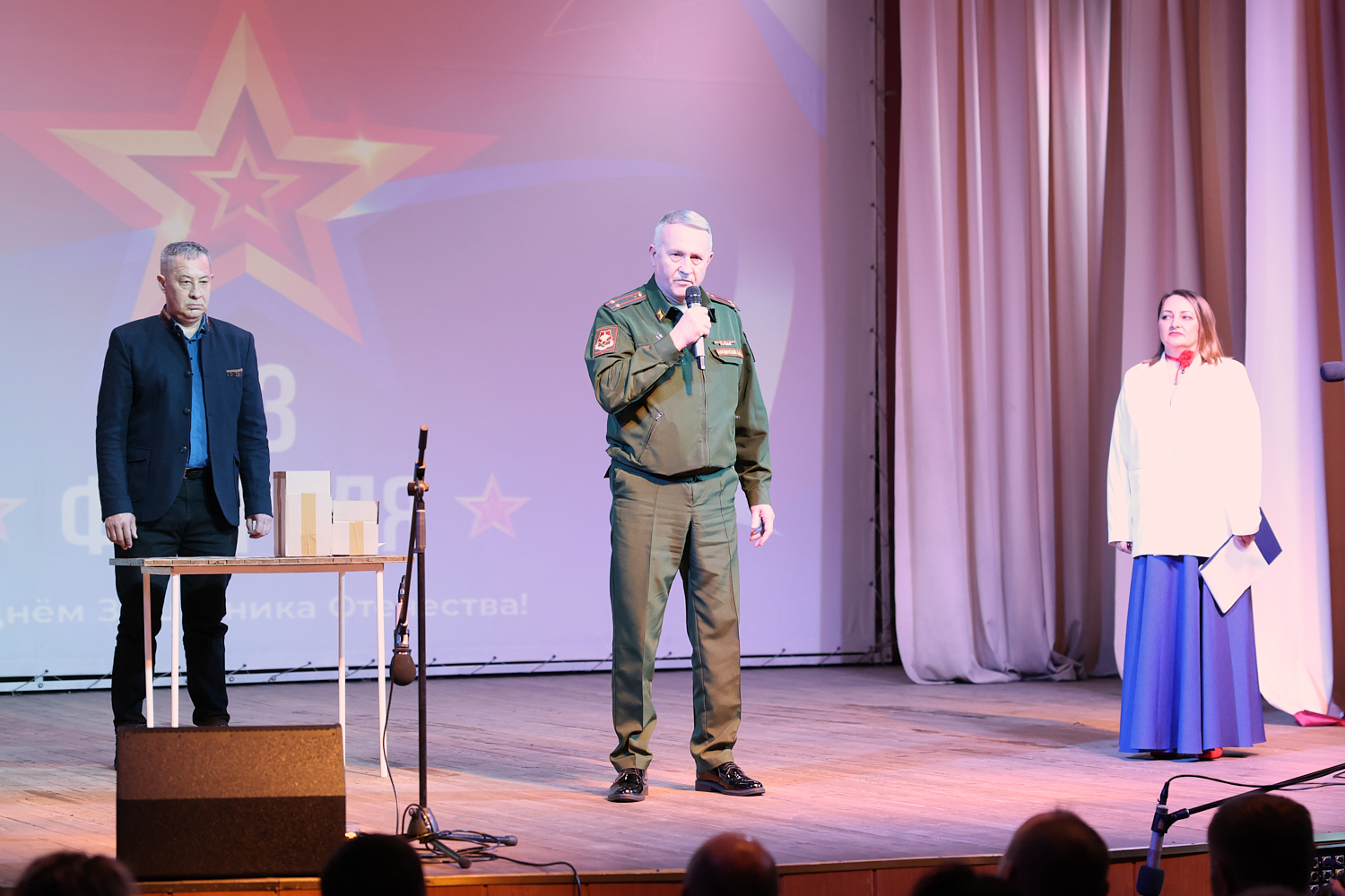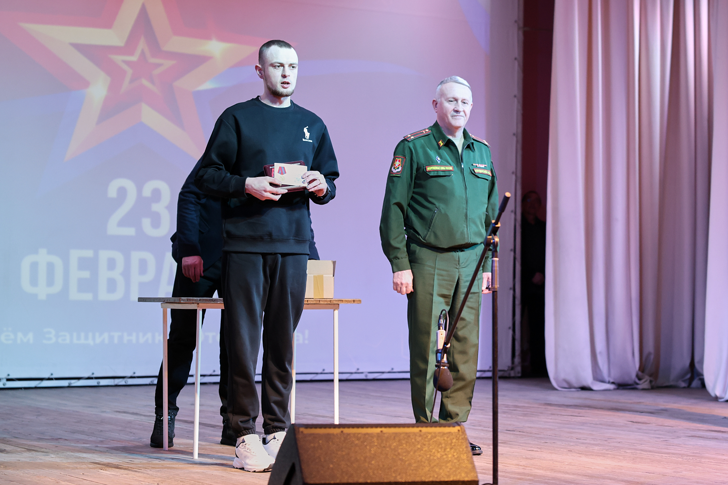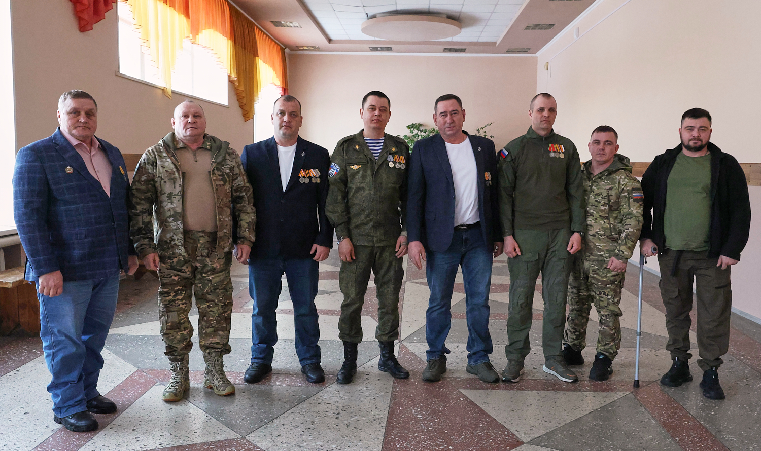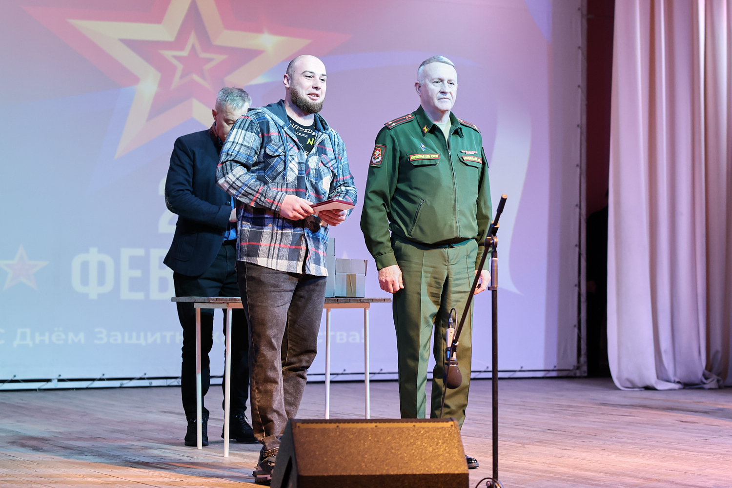 Торжественное мероприятие прошло 23 февраля в районном Дворце культуры. Правда, не все ребята смогли подняться на сцену, чтобы получить медаль. К некоторым из них Андрей Аладинский, военный комиссар Каменского, Крутихинского, Тюменцевского районов, спускался в зал. Серьезные травмы еще не зажили, поэтому некоторые герои СВО еще скованны в движениях. Один из парней отсутствовал и награду в торжественной обстановке получила его супруга с маленькой дочкой.