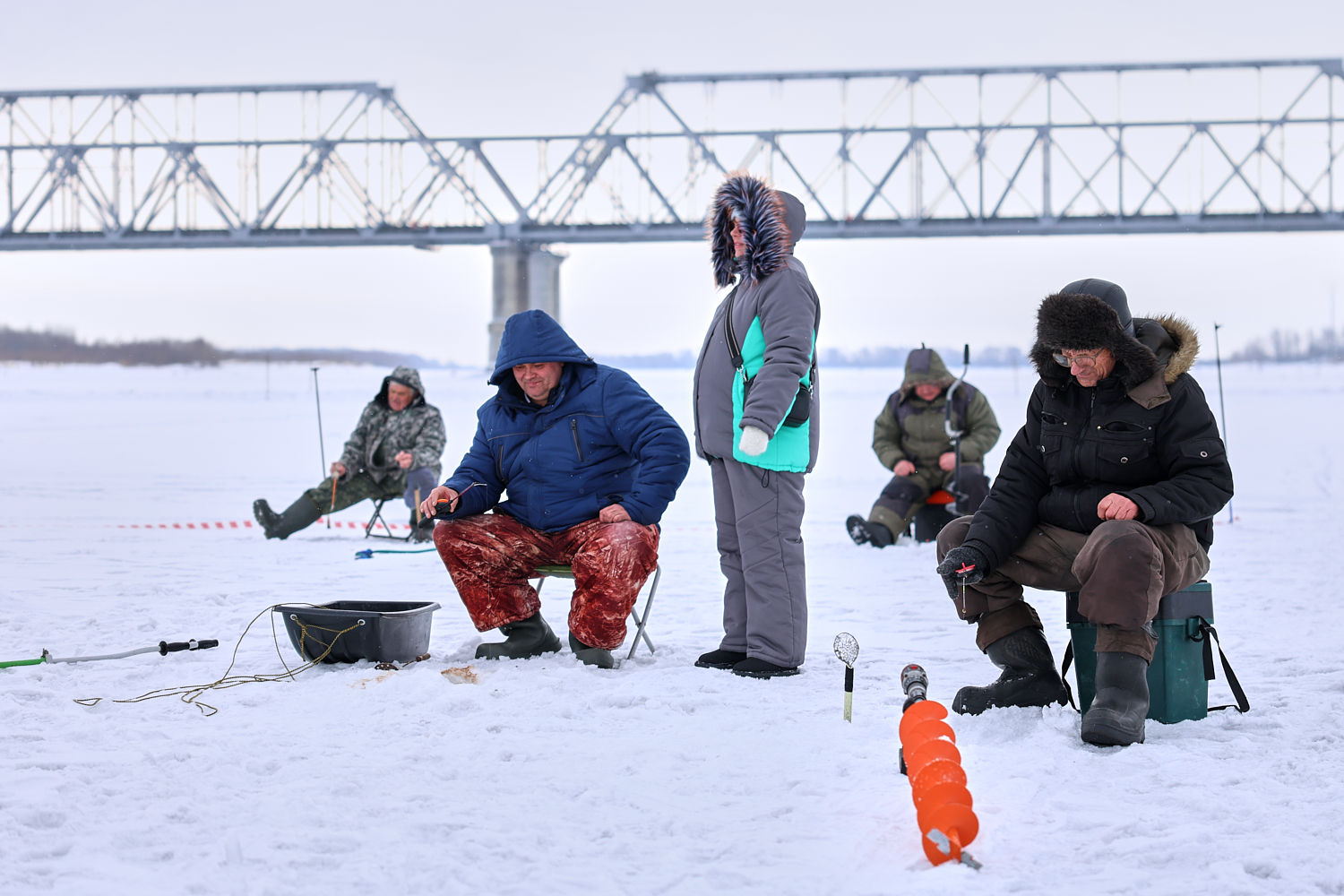 Площадку под состязания отвели рядом, огородив квадратный участок Оби примерно сто на сто метров, у спуска к реке по ул. Титова. Белоснежная гладь в этот день пестрела от рыбаков. В этом году за звание лучшего рыболова вышли побороться 37 мужчин и три женщины, доказавшие, что любовь к рыбалке не знает ни возраста, ни границ.