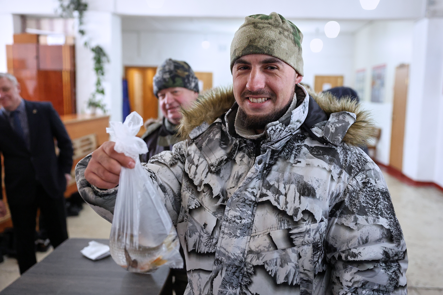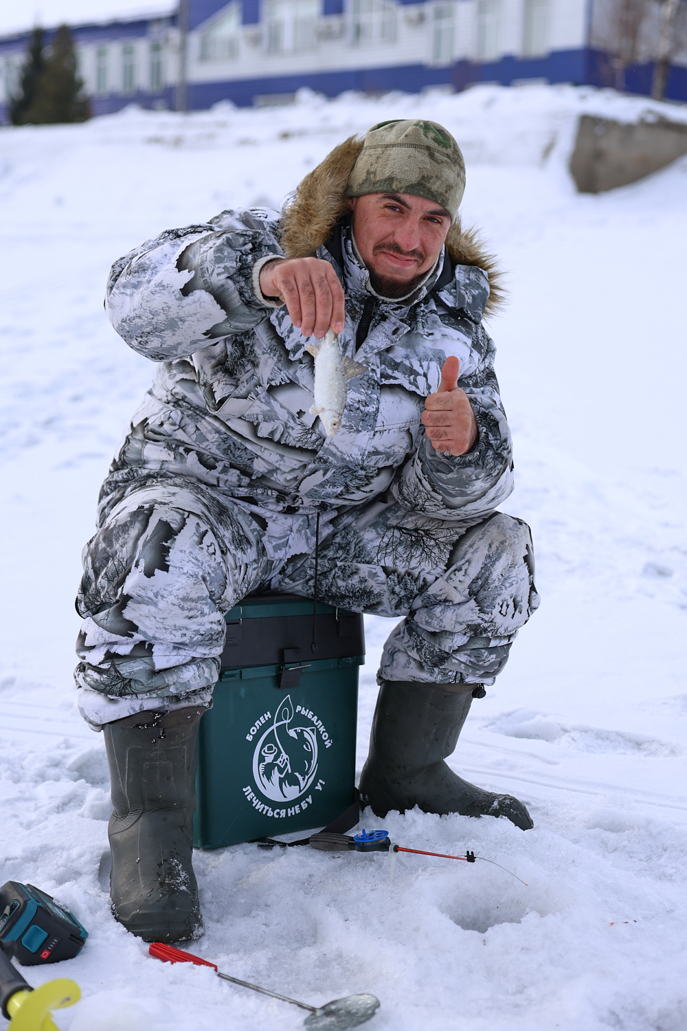 — Кот сестры сегодня будет рад, — улыбается участник соревнований. — Свежая рыбка, натуральный продукт, это вам не кошачьи консервы. Да, клюет сегодня не очень. У меня уже был поклёв, но рыба зацепилась за край лунки и сорвалась. Но хоть не с пустыми руками ушёл.
