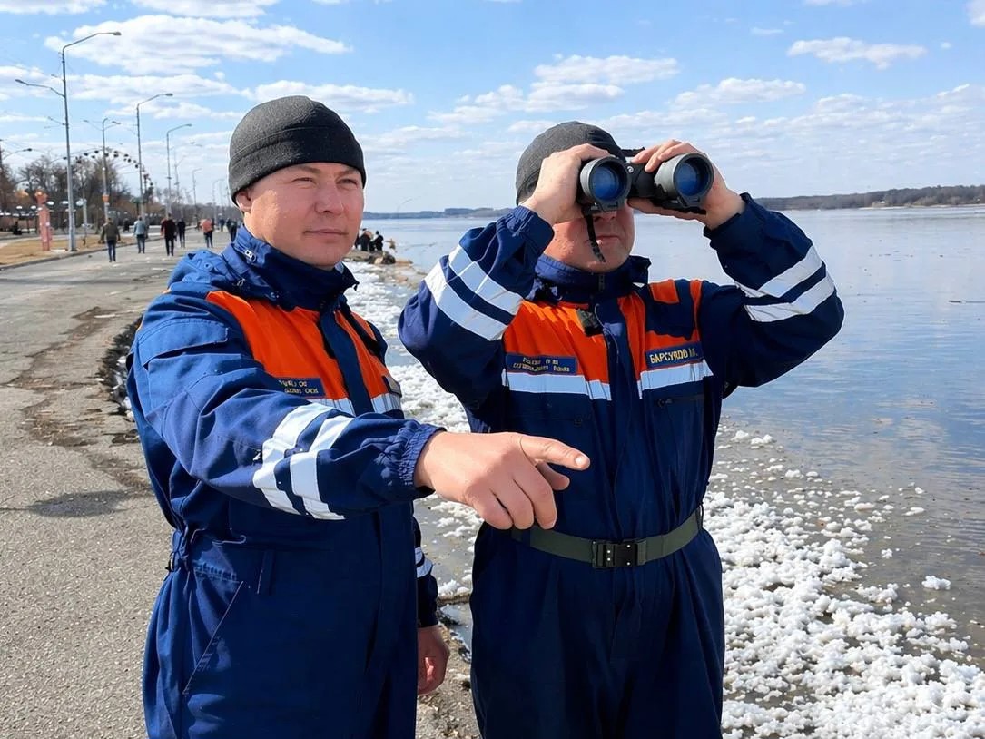 На фото: Владимир Барсуков и Сергей Степин, спасатели третьего класса спасательной станции Камня-на-Оби.