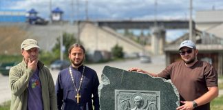 У Богоявленского храма Камня-на-Оби установили каменную икону Архангела Михаила. Видео