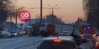 Барнаульцы вытолкнули пожарную машину, которая застряла по пути на вызов