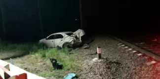 В Алтайском крае грузовой поезд снес легковушку на переезде