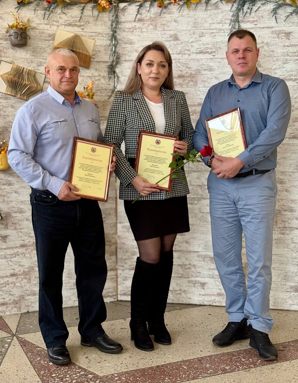 Глава района вручил за многолетний добросовестный труд Почётные грамоты Министерства сельского хозяйства Алтайского края сотрудникам Каменской птицефабрики: Павлу Виноградову, Татьяне Виноградовой, Марине Козицкой, Ивану Чупахину.