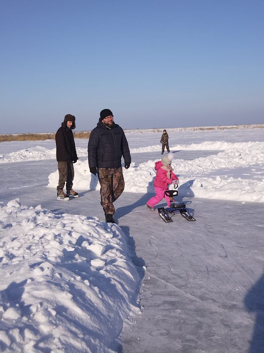 1 февраля встретились на льду дети, взрослые члены ТОС «Возрождение», жители улиц Урожайная и Сельскохозяйственная. Встреча проходила на катке нашего озера. Все подготовили для зимних развлечений: готов каток, горка рядом, катание на коньках, ватрушках, лыжах, конкурс «Минное поле» с сюрпризами и подарками. Две команды мальчишек и девчонок сражались за призы. В ход пошли ледянки, плюшки, коньки, лыжи.