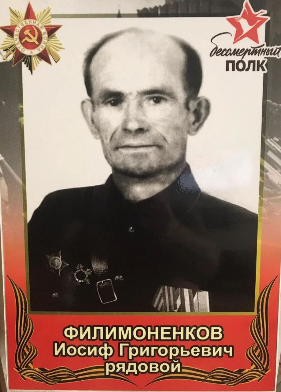 27 июня 1941 года рядовой Филимоненков в составе стрелковой роты под городом Сольцы Ленинградской области сдерживал натиск немцев. На следующие сутки отступили под город Старый Медведь, военный городок, который, несмотря на превосходящие силы противника, сдерживали в течение 7 суток, т.е. до 4 июля 1941 года.