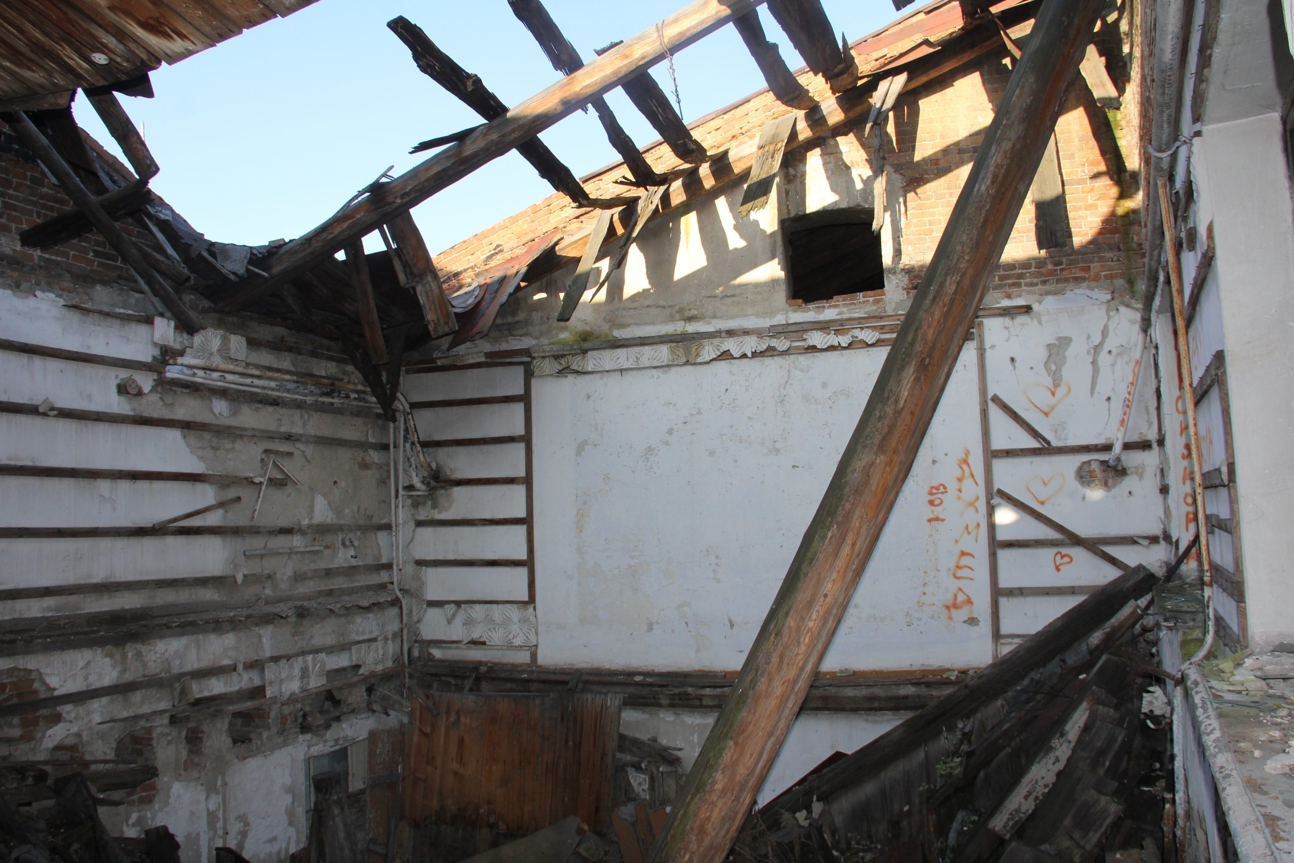 Здесь, как и на крыше архитектурного памятника краевого значения, уже растут деревья. В опасное здание проникает молодежь. Здесь жгут костры. Причём, заколоченные после нашей публикации два года назад окна и двери внутреннего двора, не смущают любителей острых ощущений. Пробраться в здание, где масштабно обваливается крыша, можно, как через окно, так и еще через несколько лазов, о которых прекрасно осведомлена молодёжь.