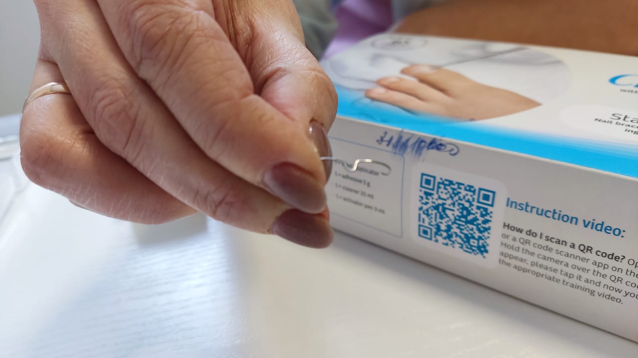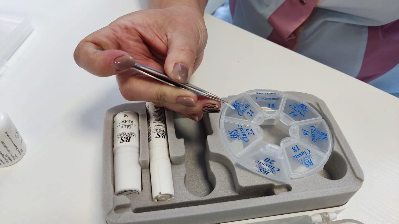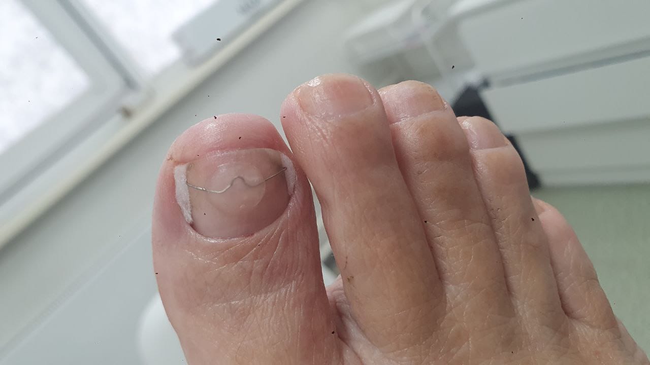 Есть и еще одно неудобство, которое может портить жизнь — когда ноготь врастает в кожу. И это можно решить установкой коррекционных систем. Устанавливаем специальную пластину, которая крепится специализированным клеем. И при ходьбе ноготь начинает расти в правильном направлении. В некоторых случаях ставится скоба. А иногда достаточно лишь правильно постричь ногти и сделать тампонады. Главное, что выход есть и все можно исправить».
